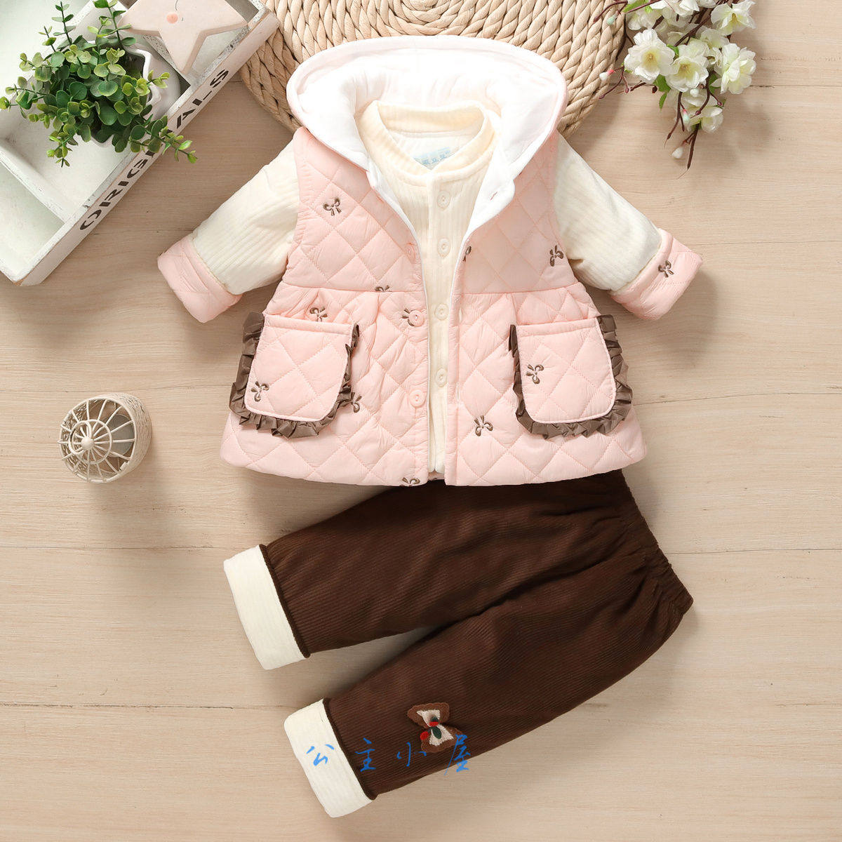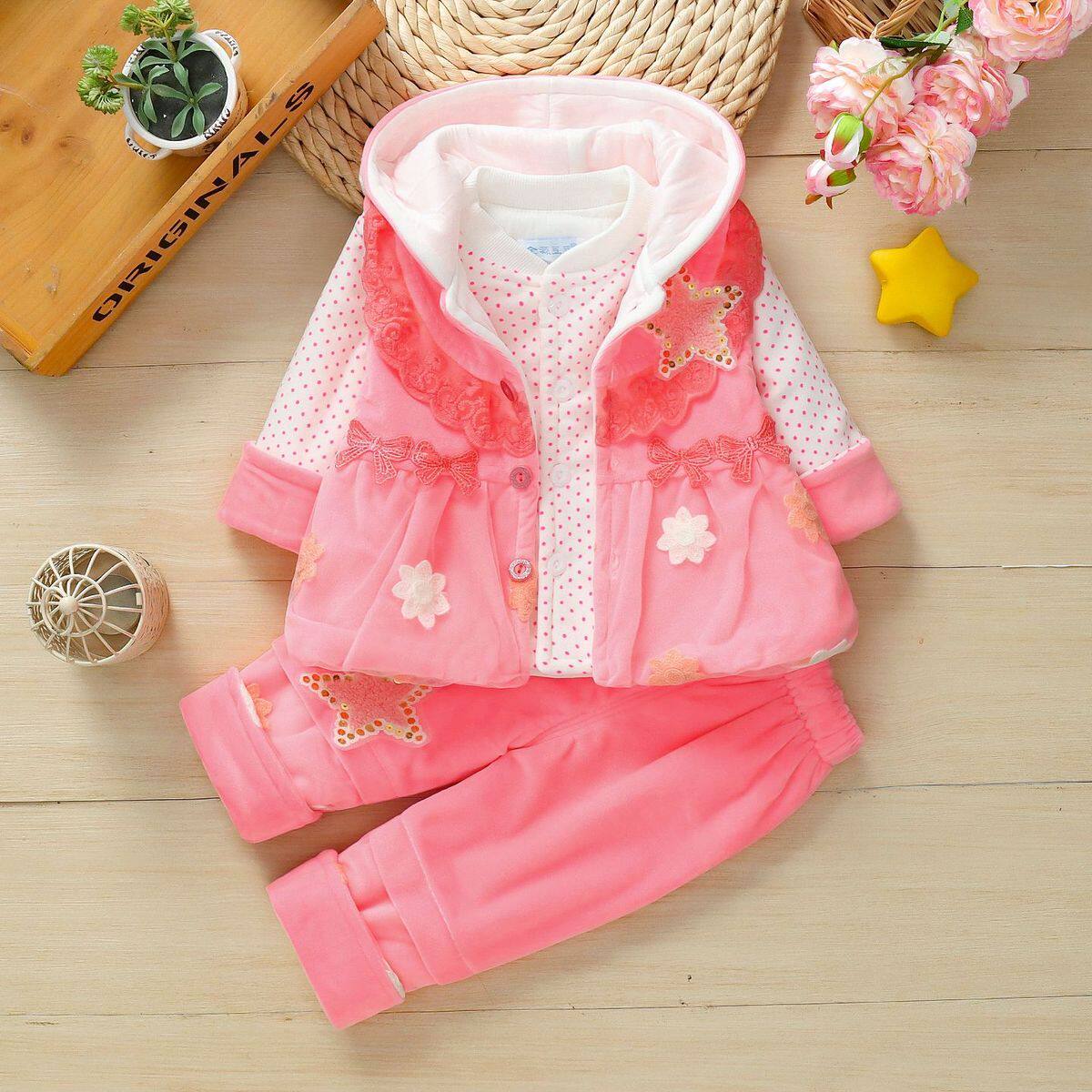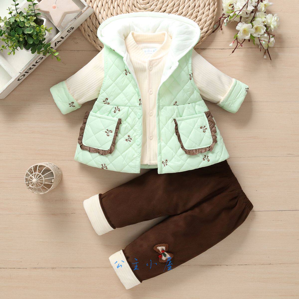 女宝宝秋冬装夹棉套装0-1-2岁新生婴幼儿童装衣服秋季棉衣三件套