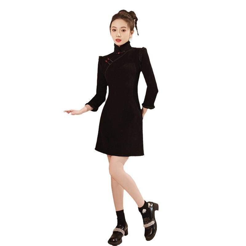 冬季旗袍秋冬短款小个子红色过年小袄加绒加厚改良敬酒服连衣裙女