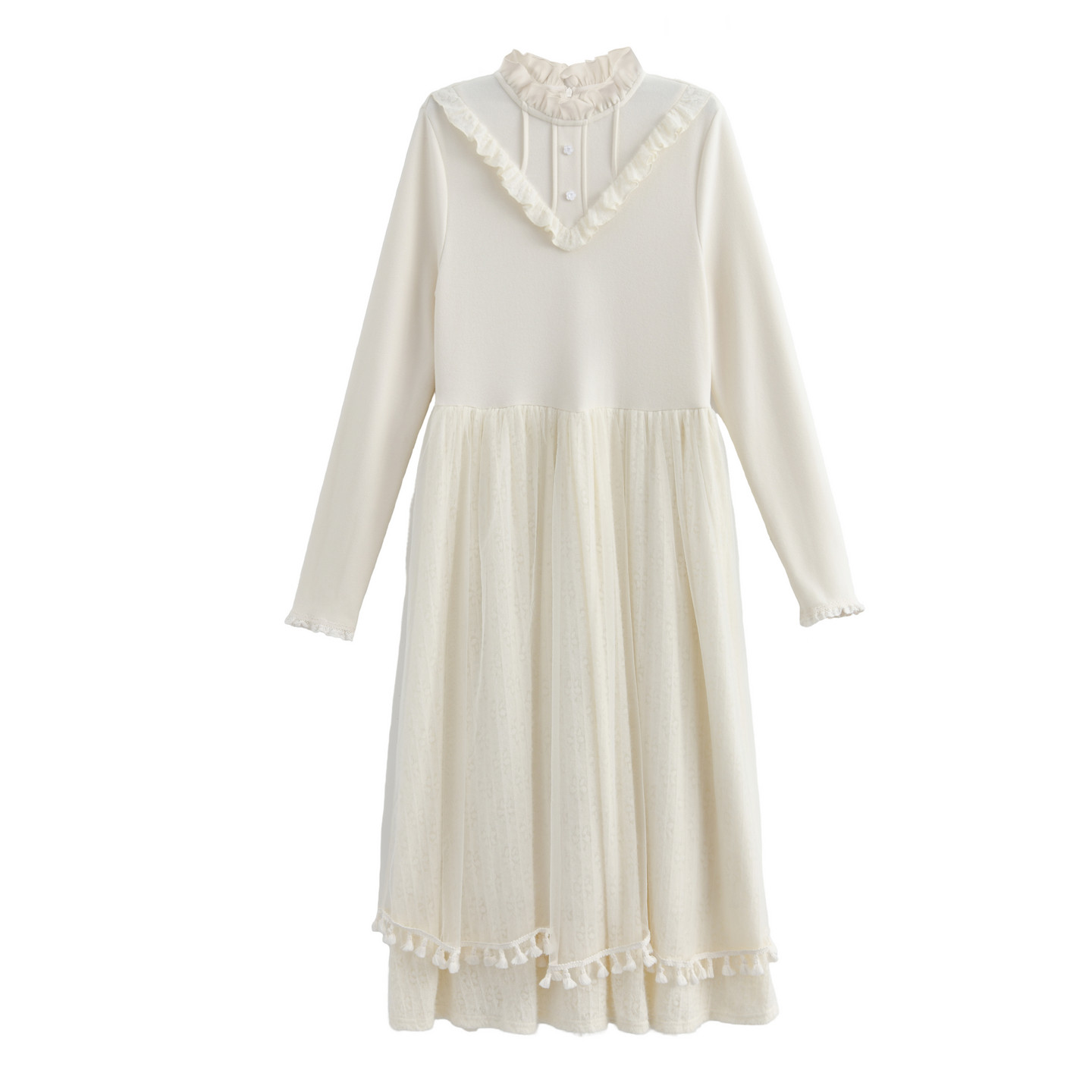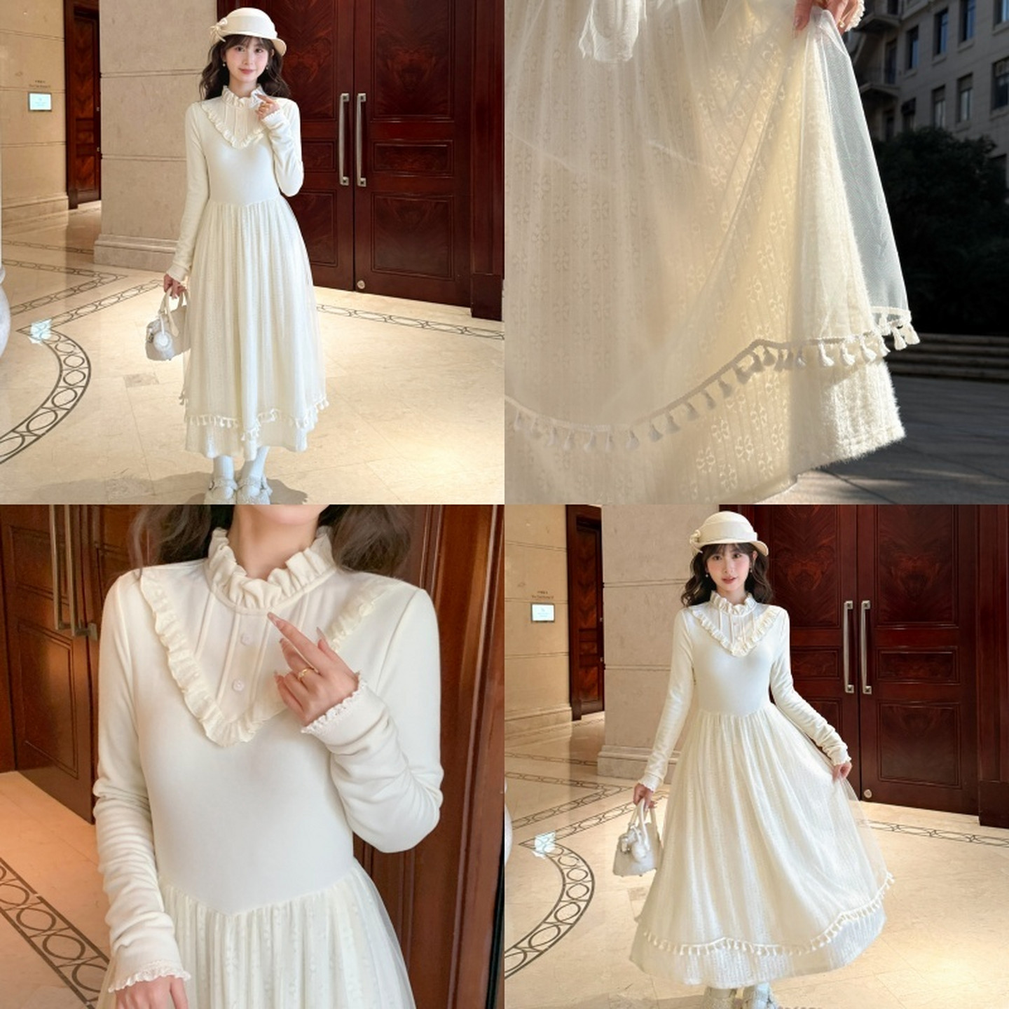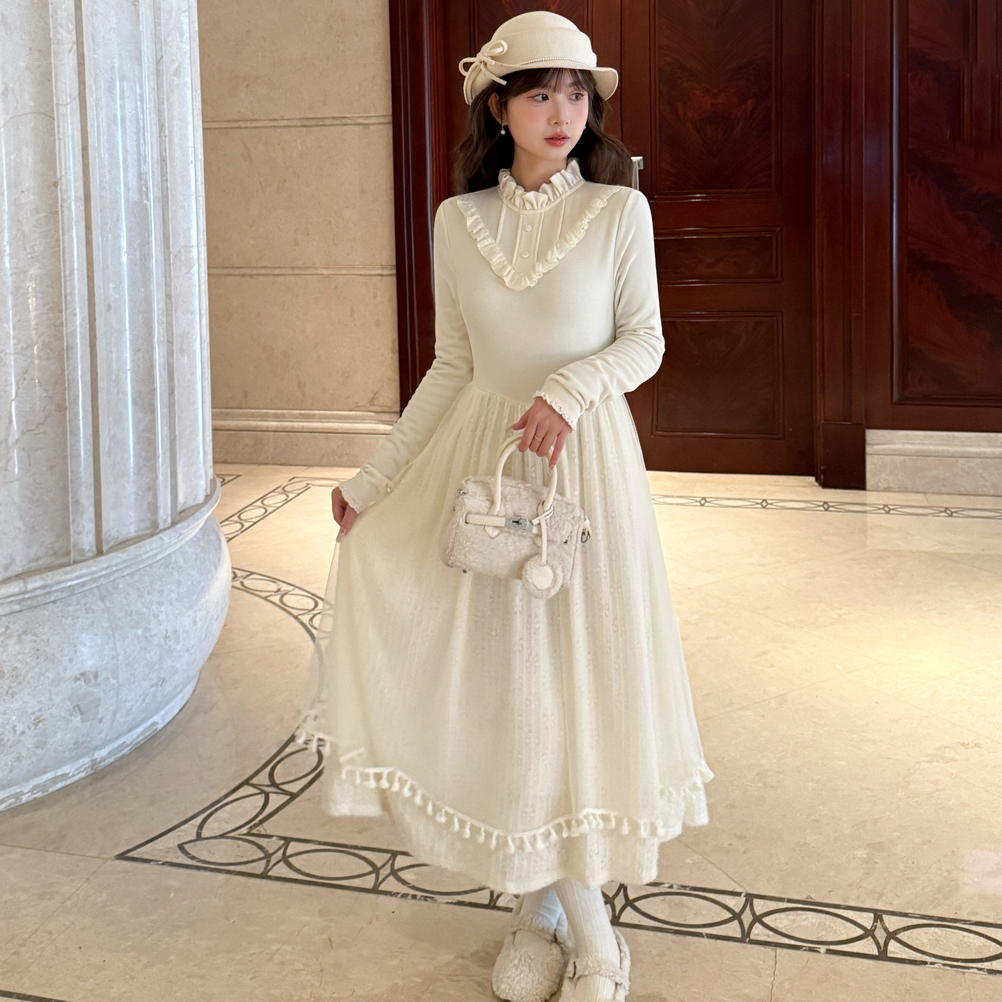 森女部落甜美温柔风立领长袖长裙2026新款百搭修身显瘦连衣裙冬季