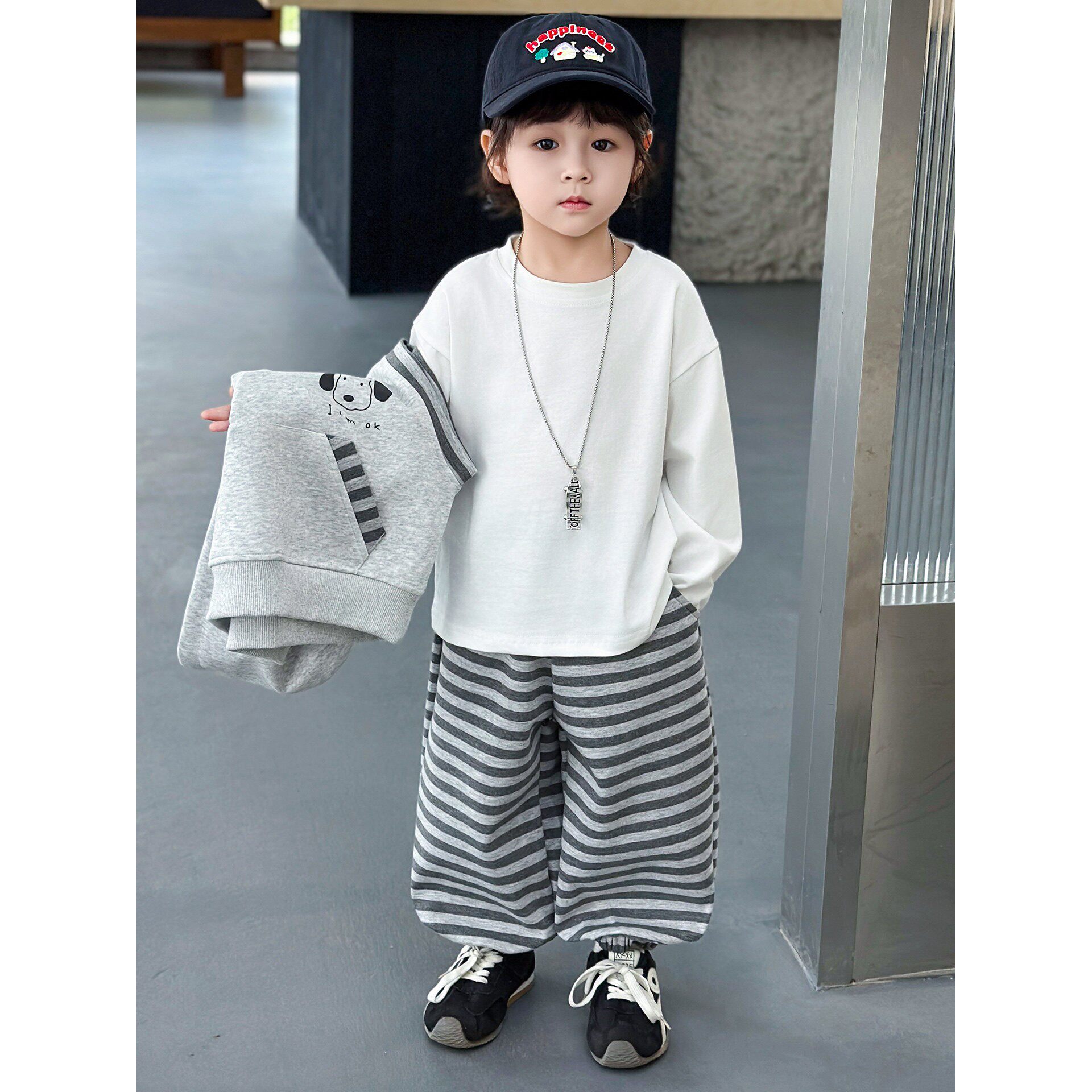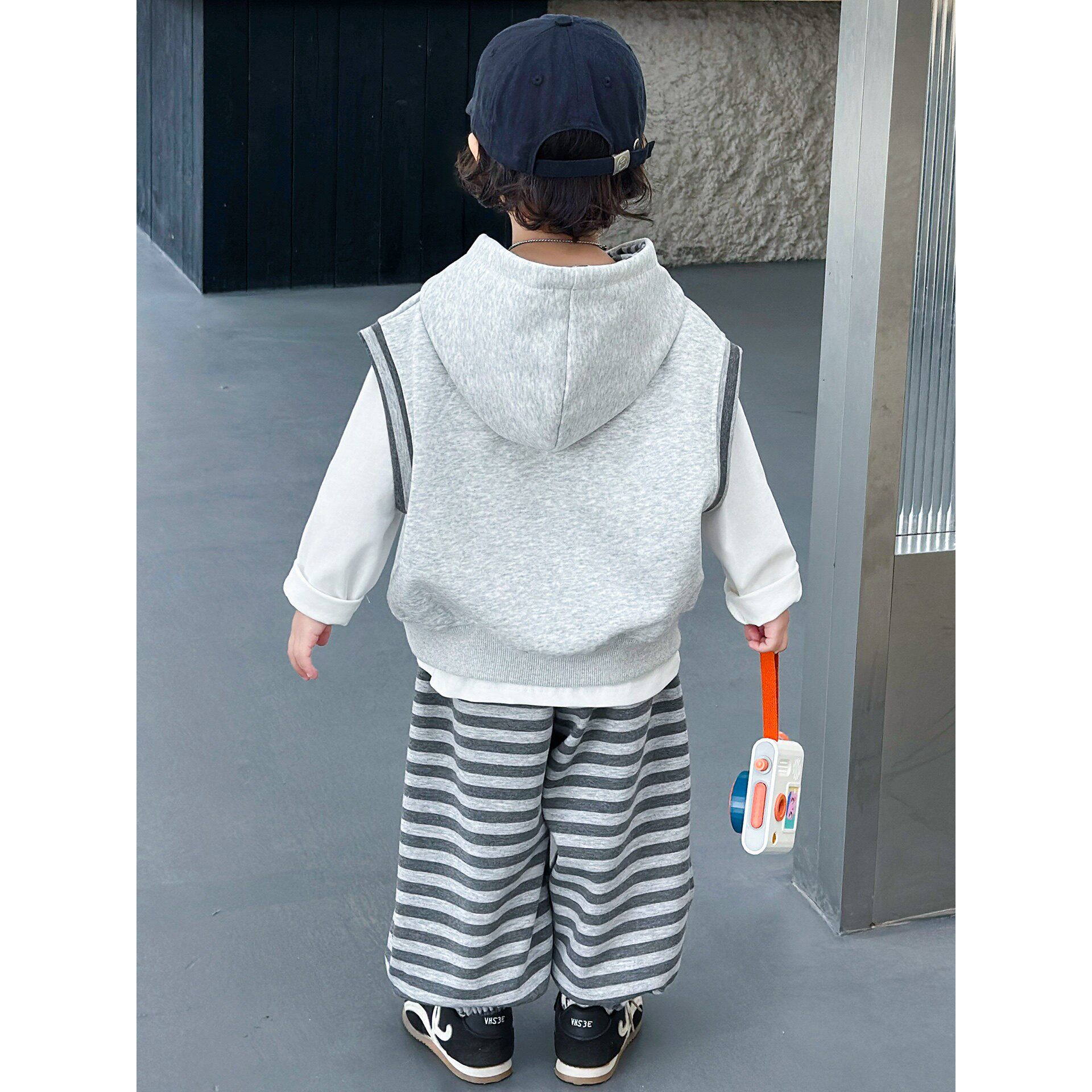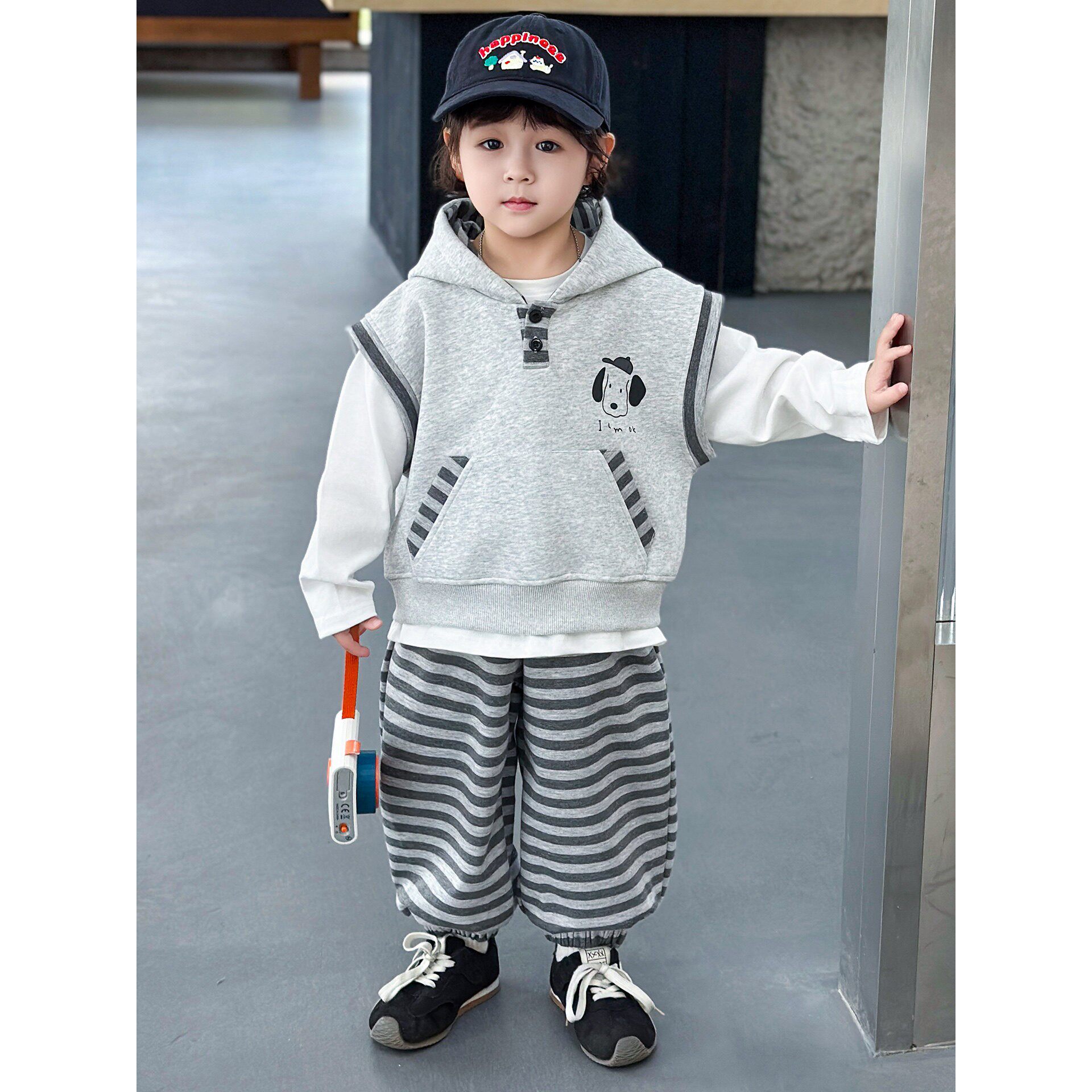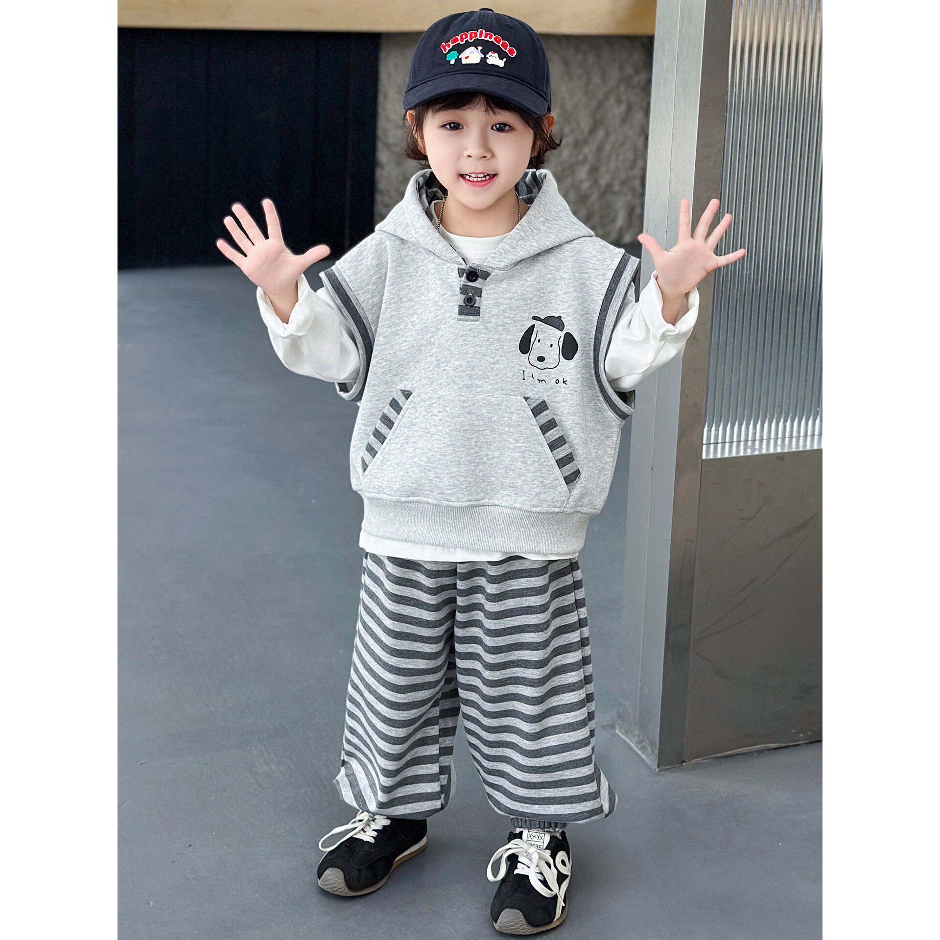男童套装春秋款韩版帅气2026新款儿童连帽马甲卫衣三件套春装衣服