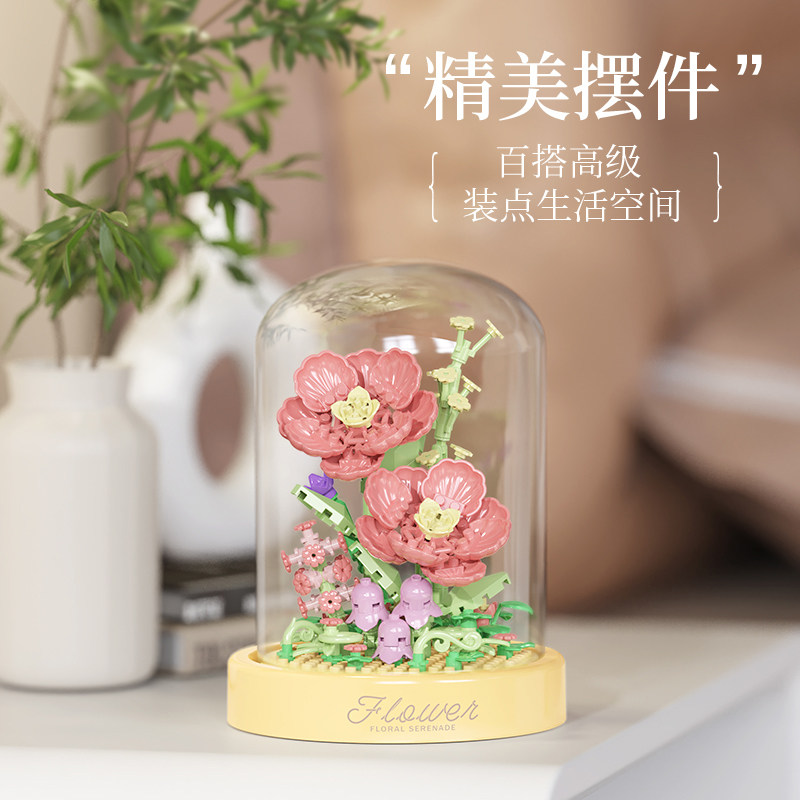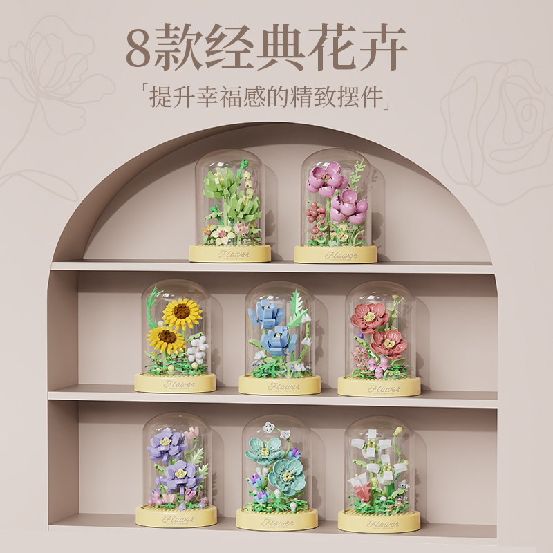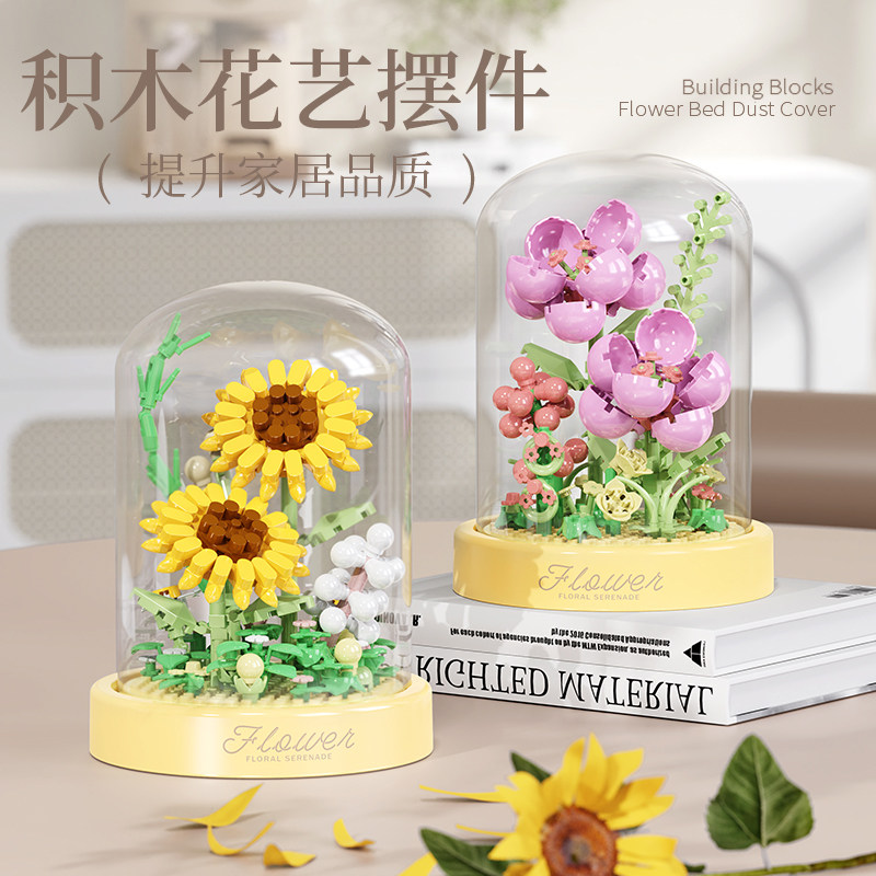 2026新款积木向日葵玫瑰花益智拼装玩具摆件男女孩六一儿童节礼物