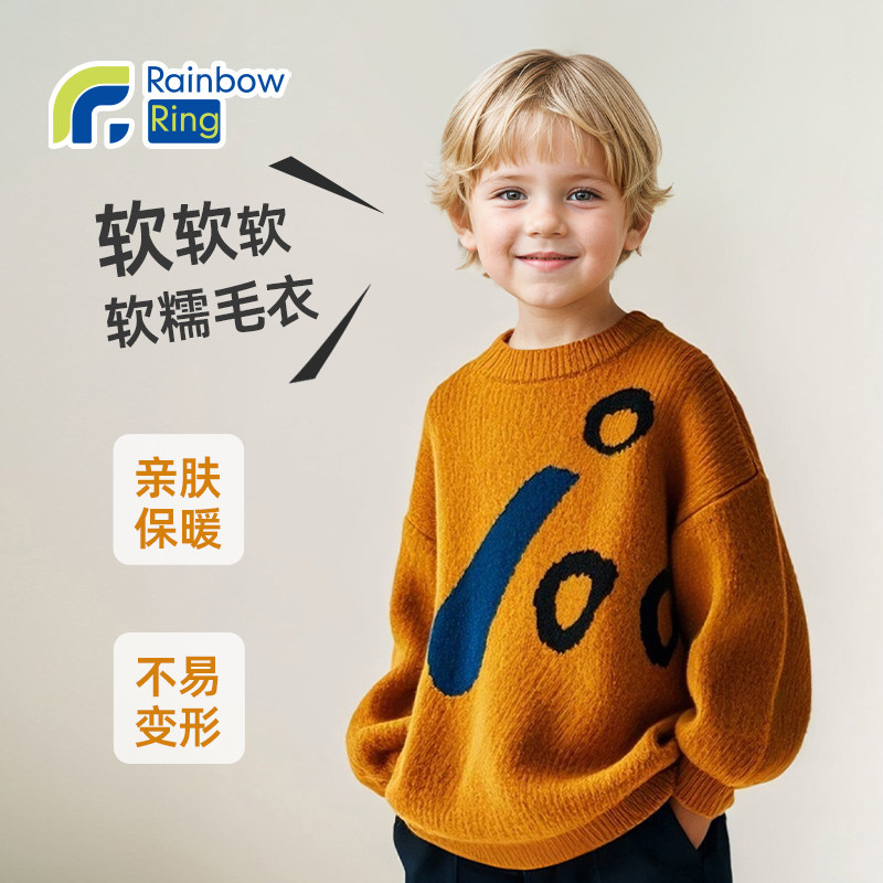 男童毛衣春秋冬季2026新款中大儿童黄色套头线衣男孩针织内搭上衣