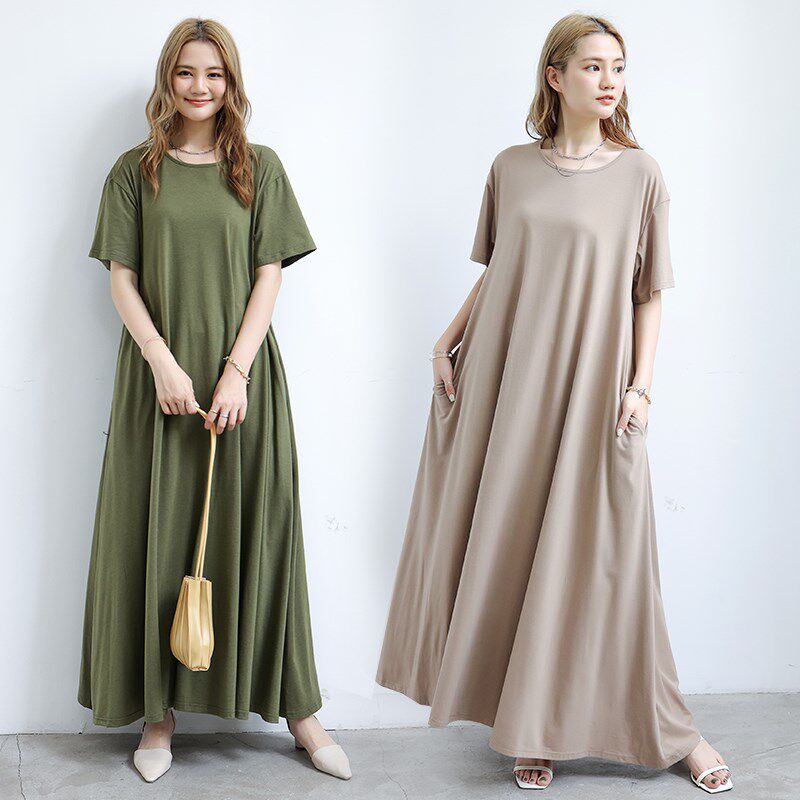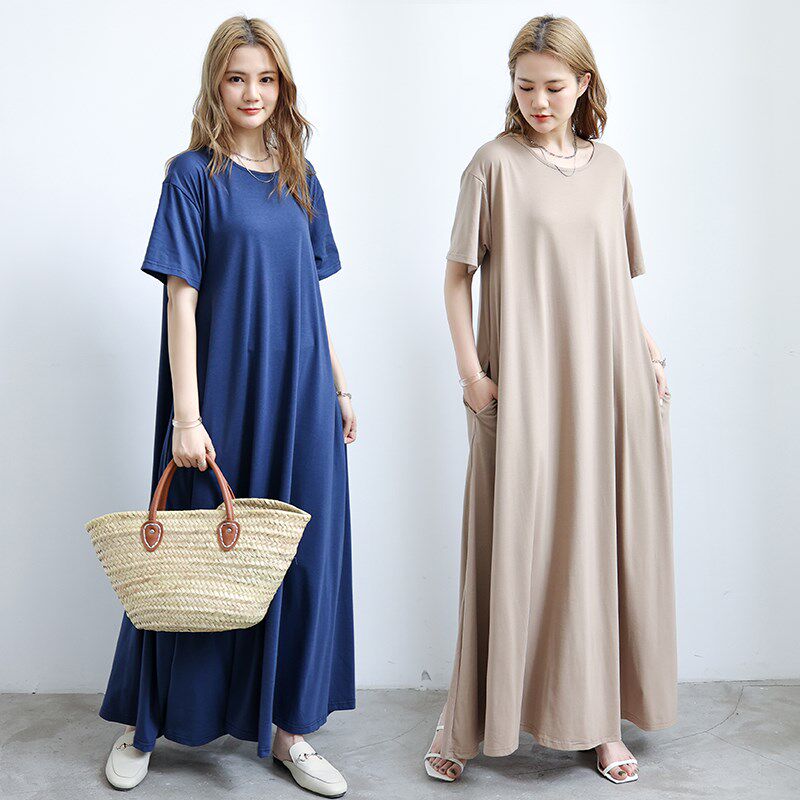 秋夏韩版女装过膝连衣裙大裙摆短袖长裙内搭打底裙大码长款孕妇裙