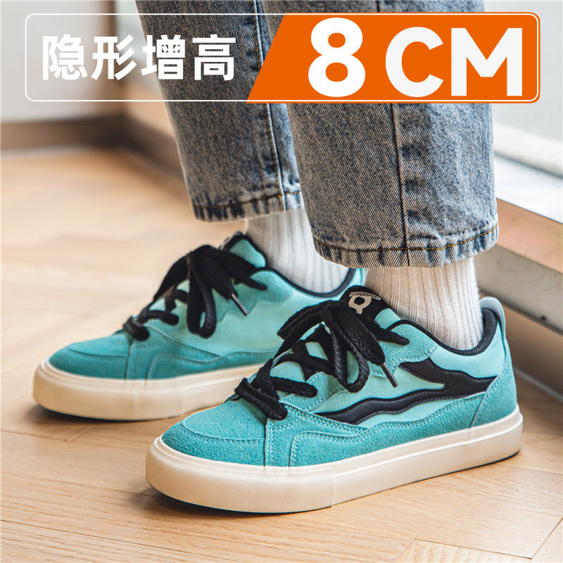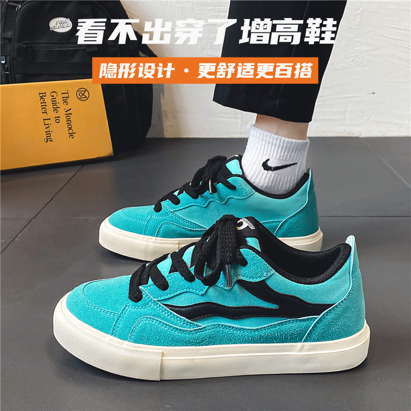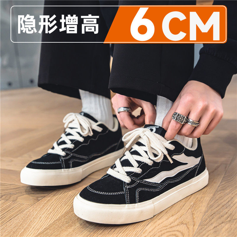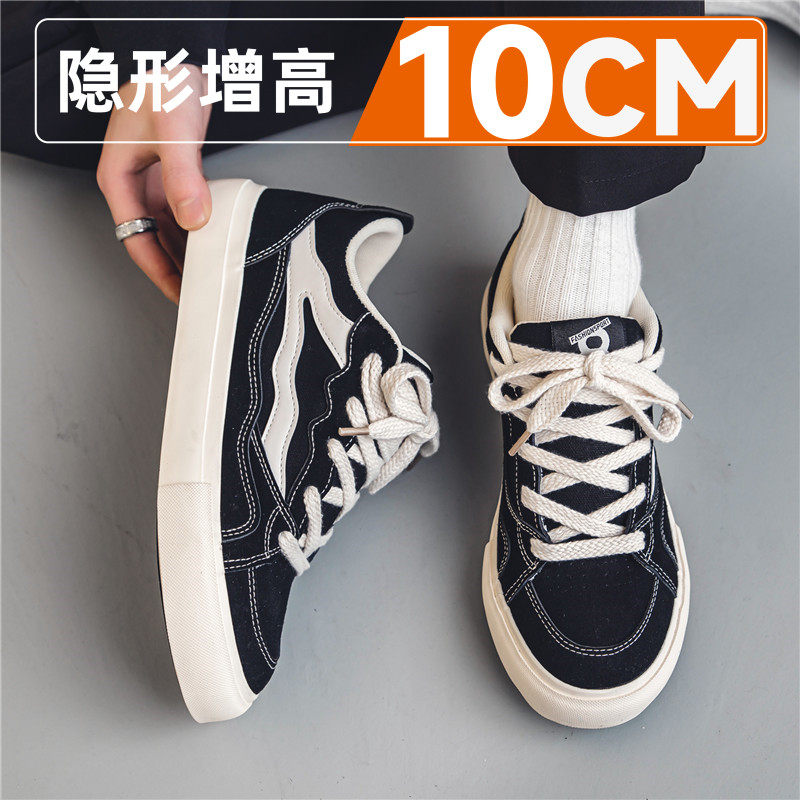 潮牌真皮帆布男鞋2026新款夏季透气隐形内增高10cm男生百搭休闲运