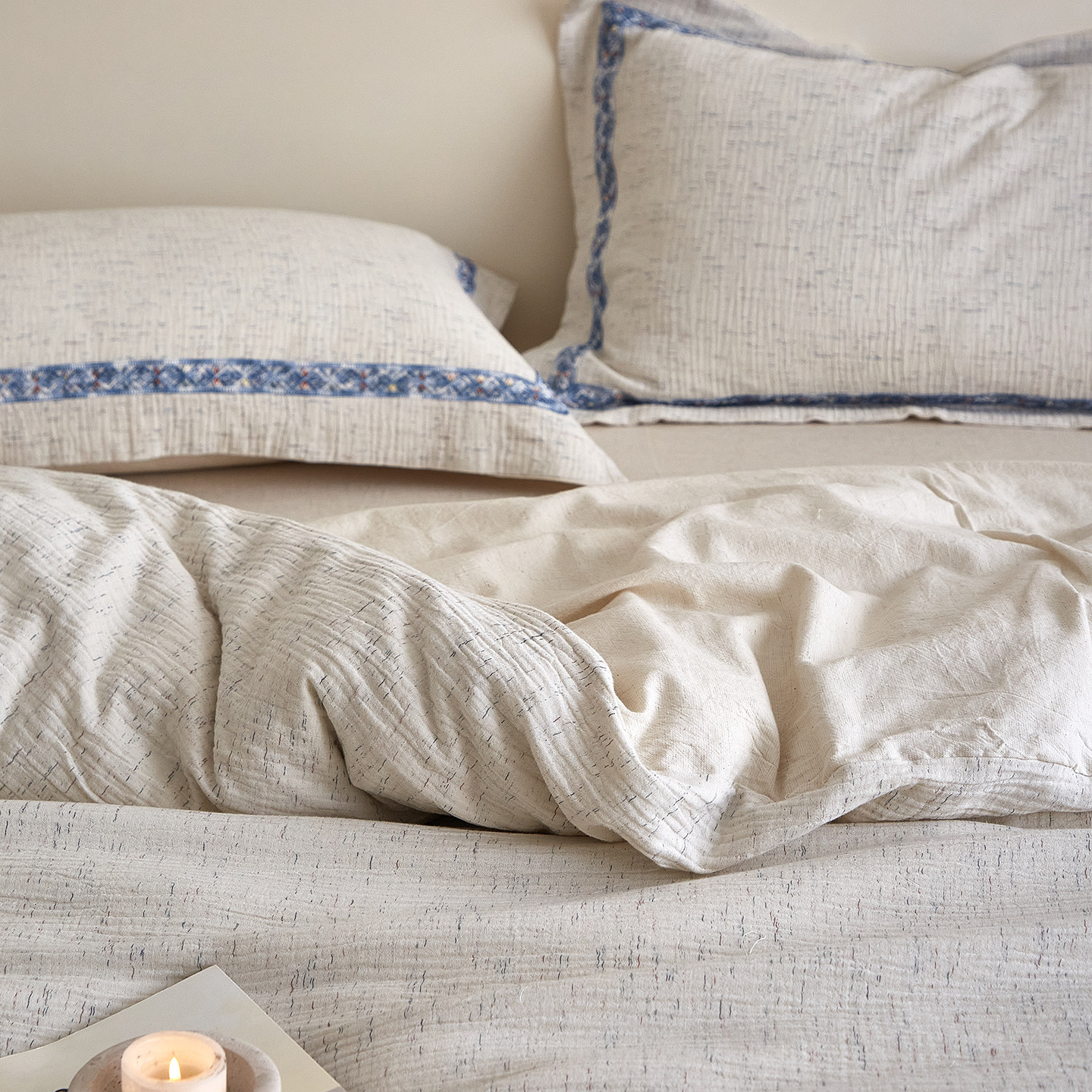 南法假日新疆长绒棉棉麻亚麻四件套全棉纯棉提花床上用品床单被套