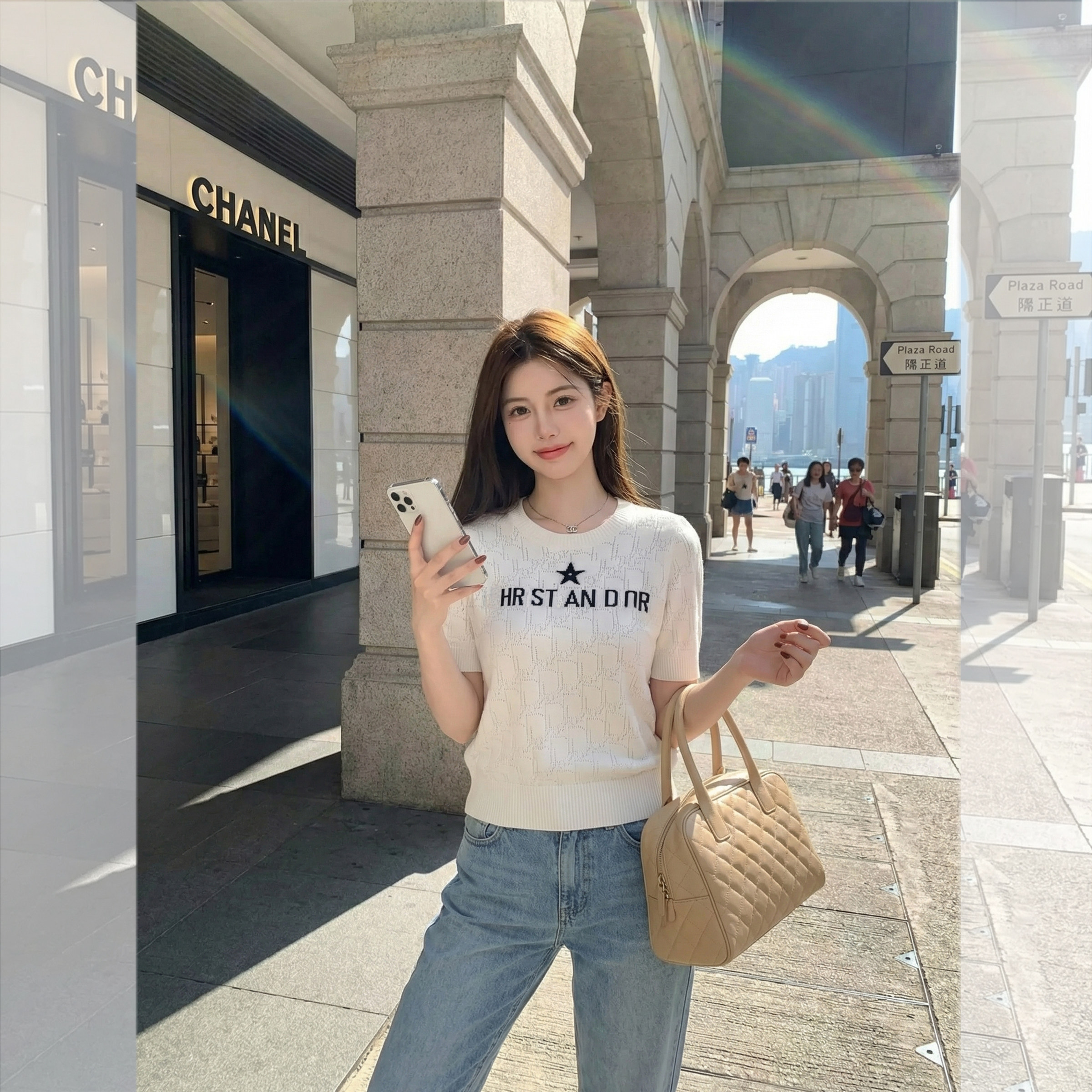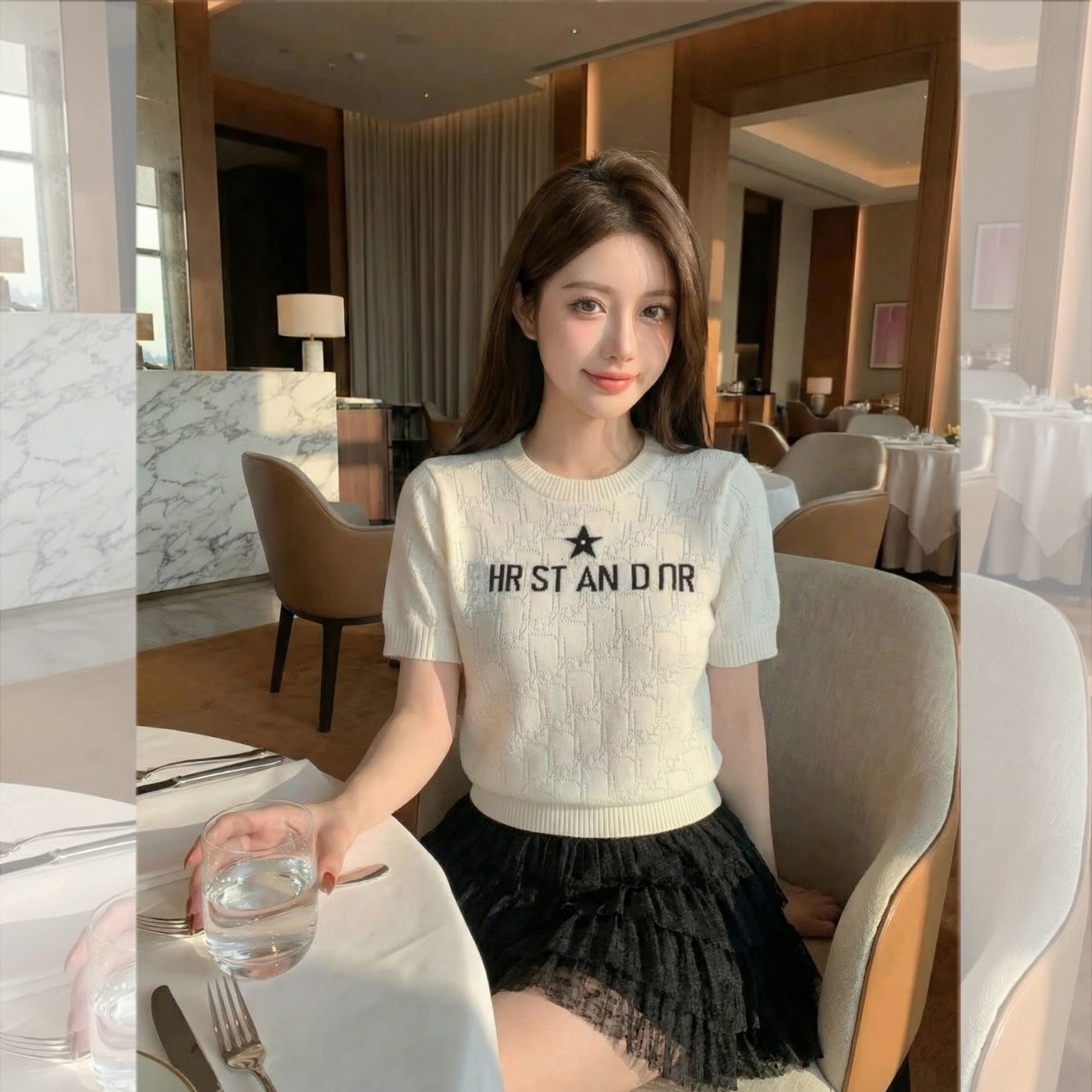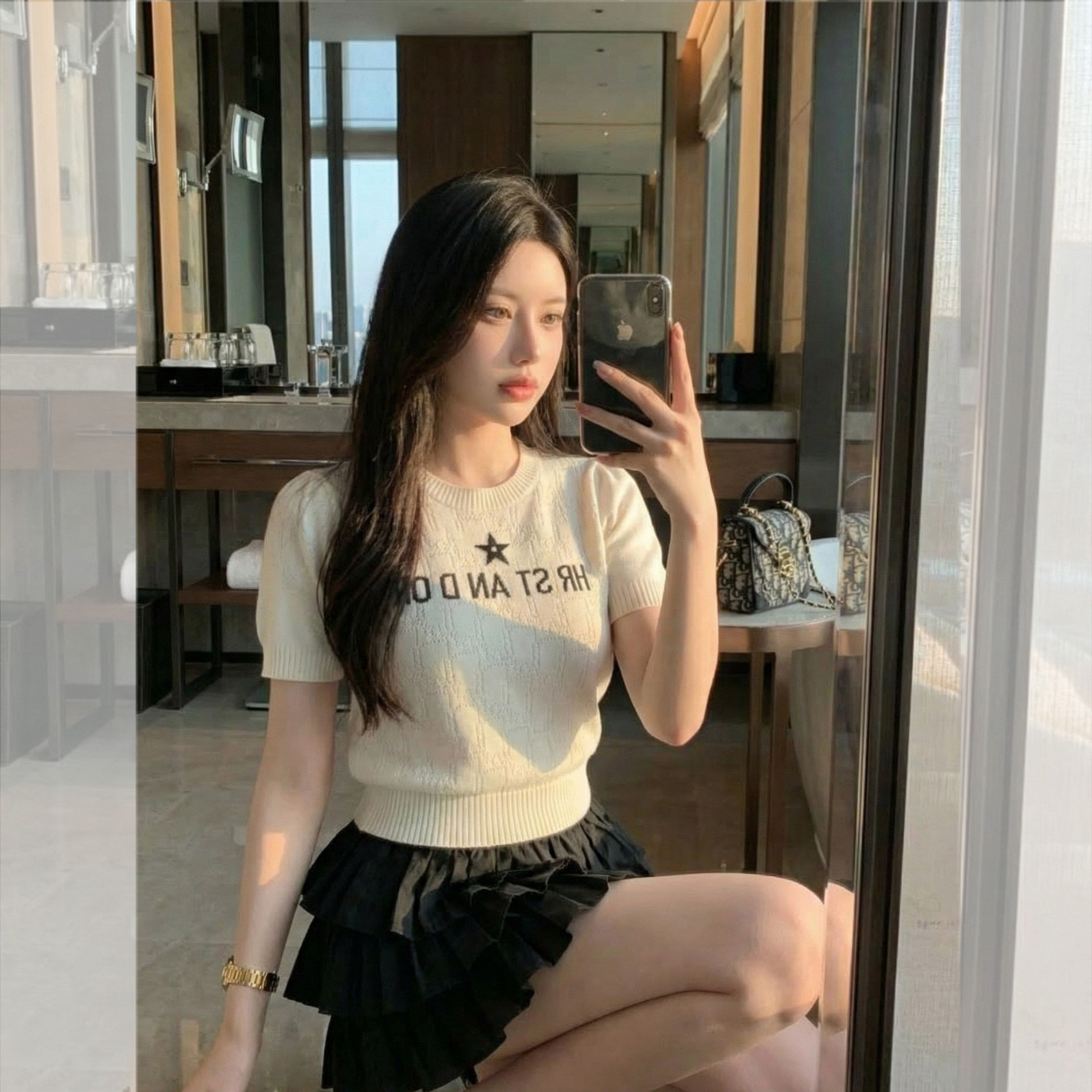 钟菲菲春款2026新款女装针织chic气质上衣短袖高端小资独特漂亮