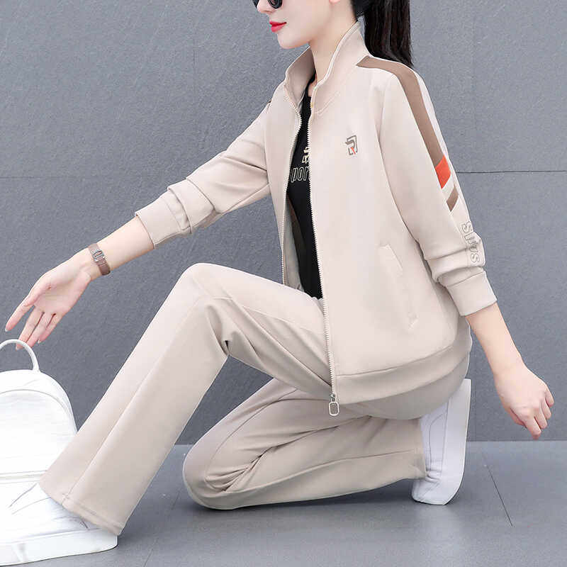 中年妈妈秋装休闲运动套装女士2024新款时尚洋气减龄小个子三件套