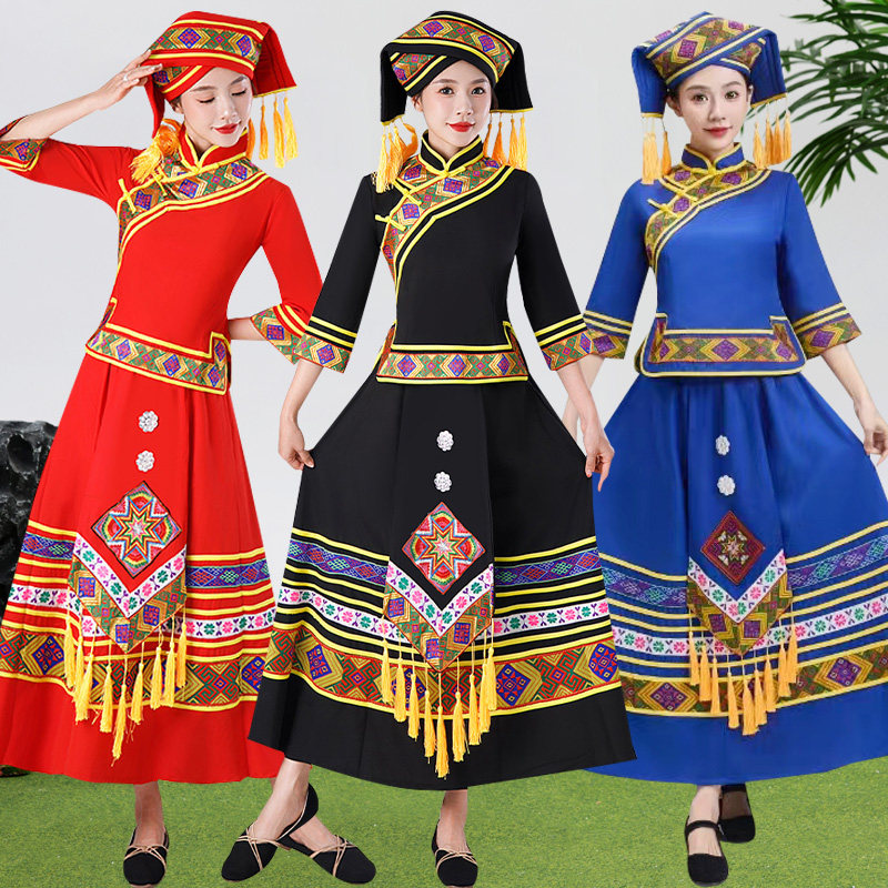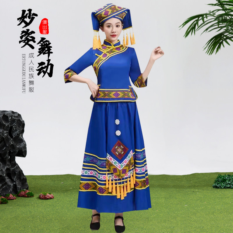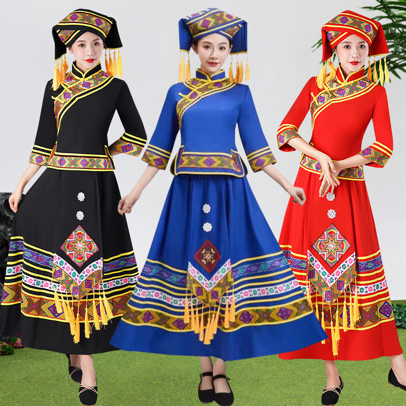 广西壮族服装三月三少数民族表演服装成人女苗族彝族舞蹈演出服装