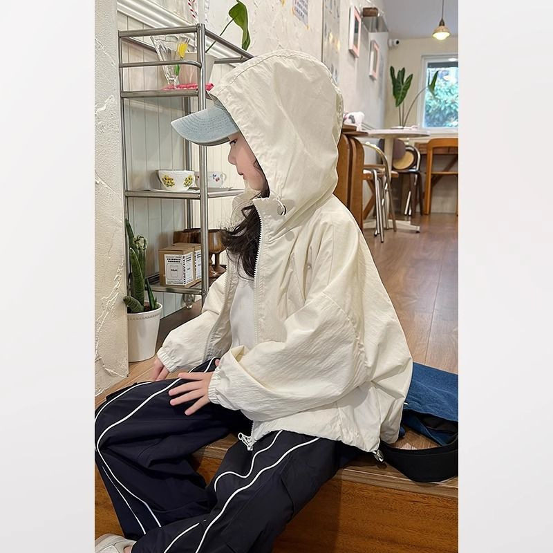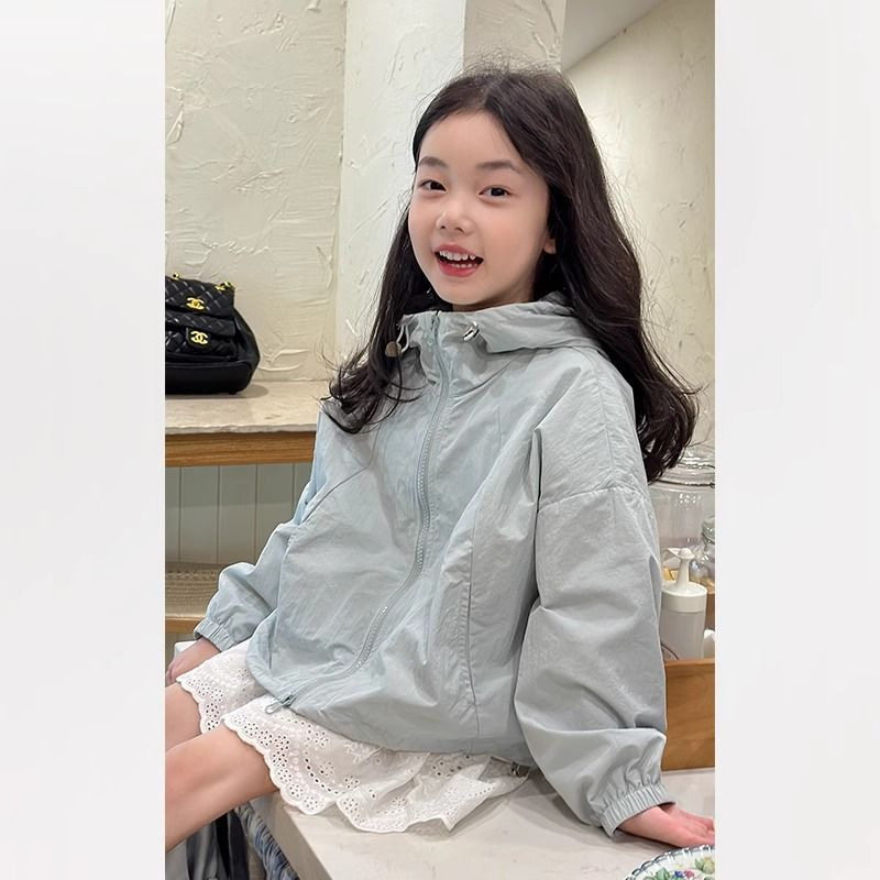 女童韩版薄款风衣外套2026春装新款儿童百搭休闲连帽防晒冲锋衣潮