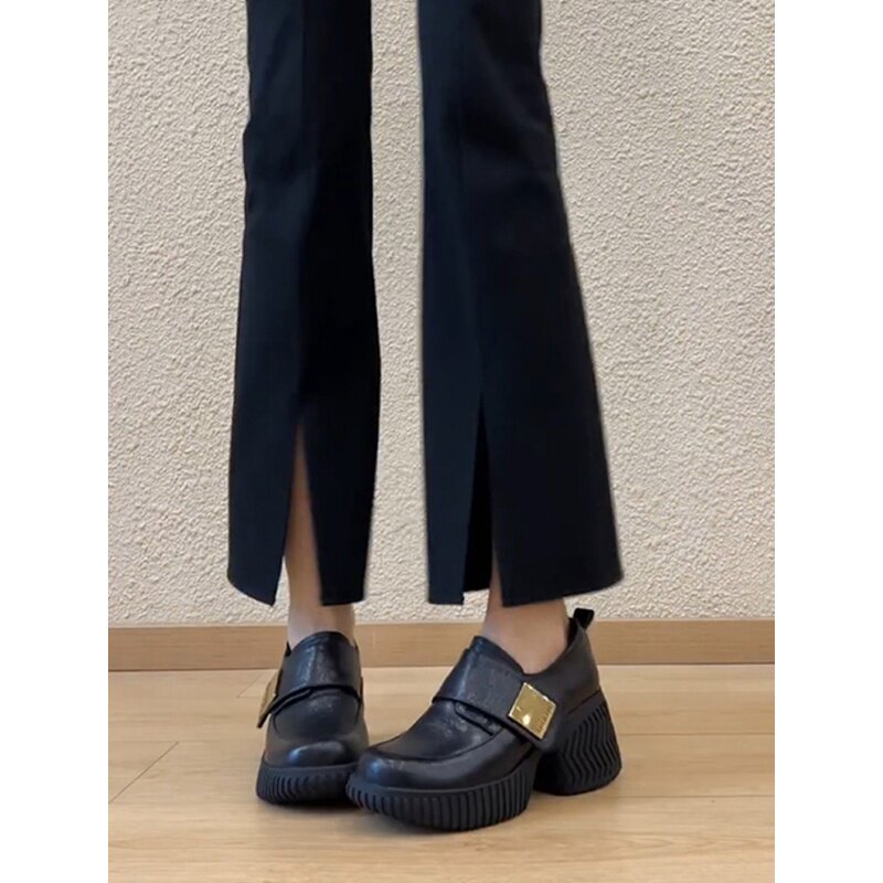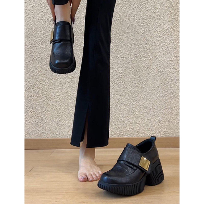 小个子厚底增高8cm魔术贴乐福鞋女2026春新款英伦黑色小皮鞋单鞋