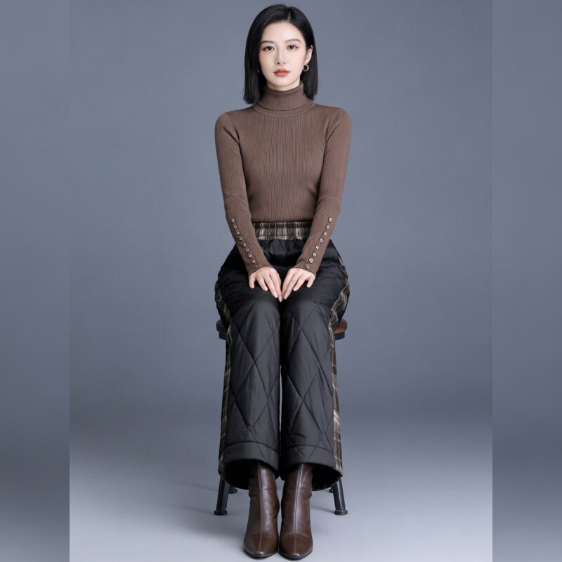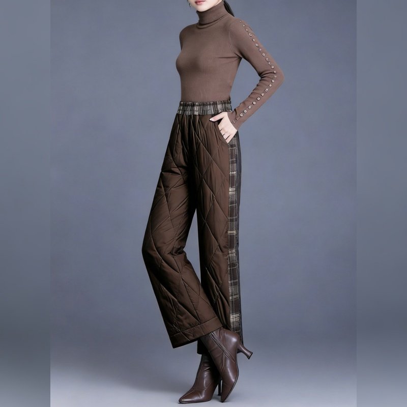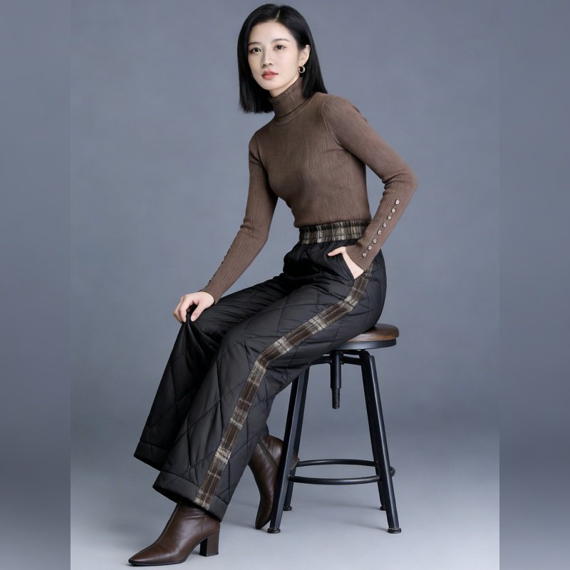 红色羽绒棉裤女款秋冬季防风裤外穿裤子2026新款直筒阔腿裤女裤子
