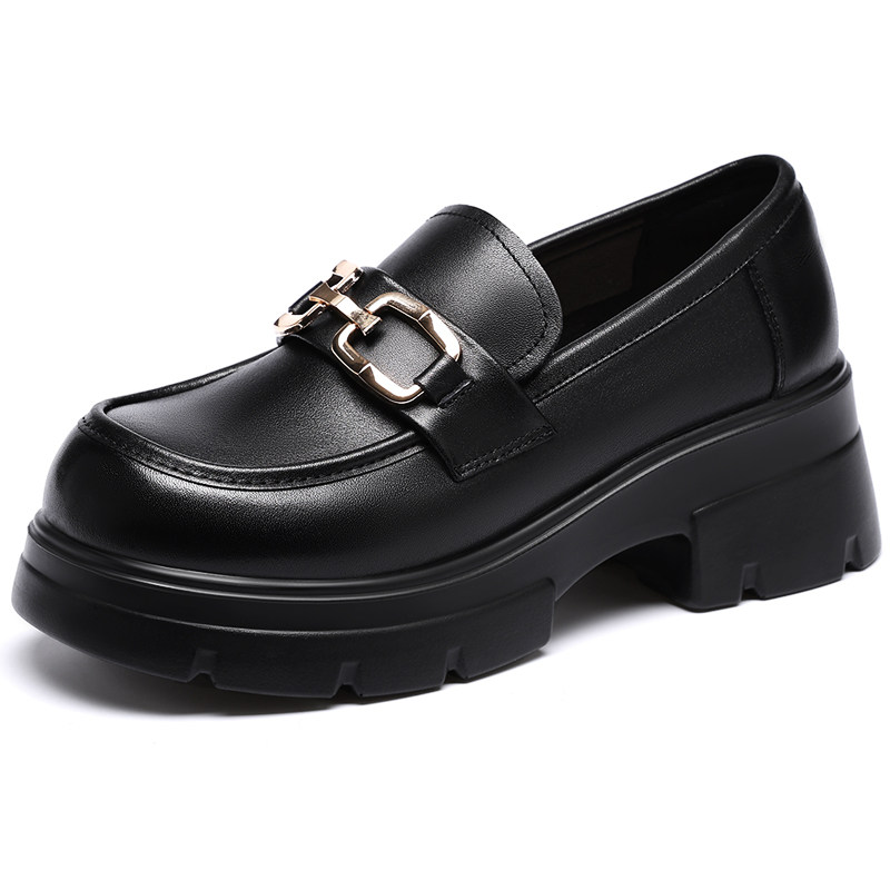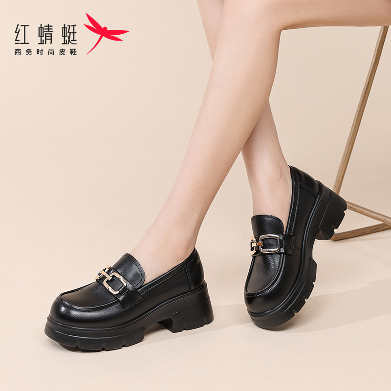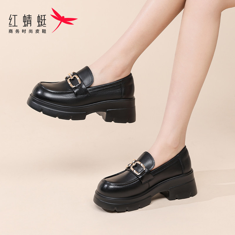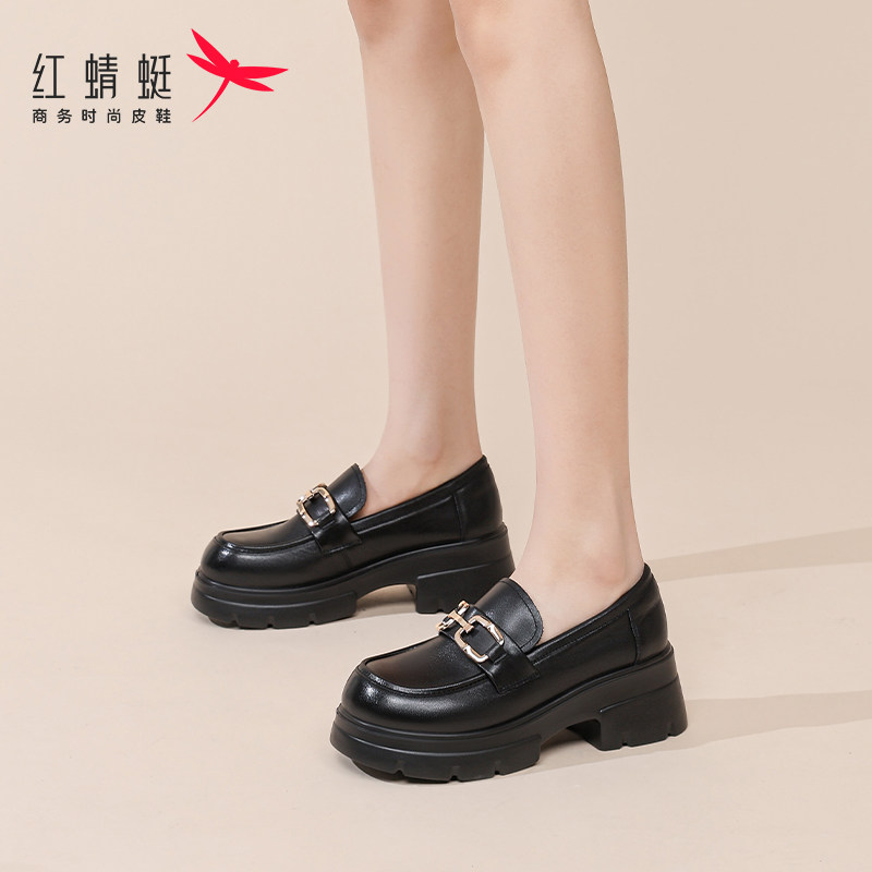红蜻蜓正品女乐福鞋2025新款厚底增高英伦一脚蹬真头层牛皮小皮鞋