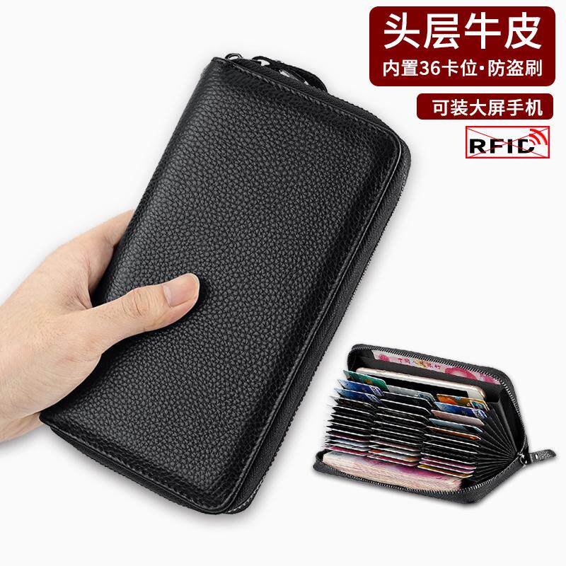 真皮男士卡包女款多卡位拉链钱包长款一体大容量证件收纳银行卡套