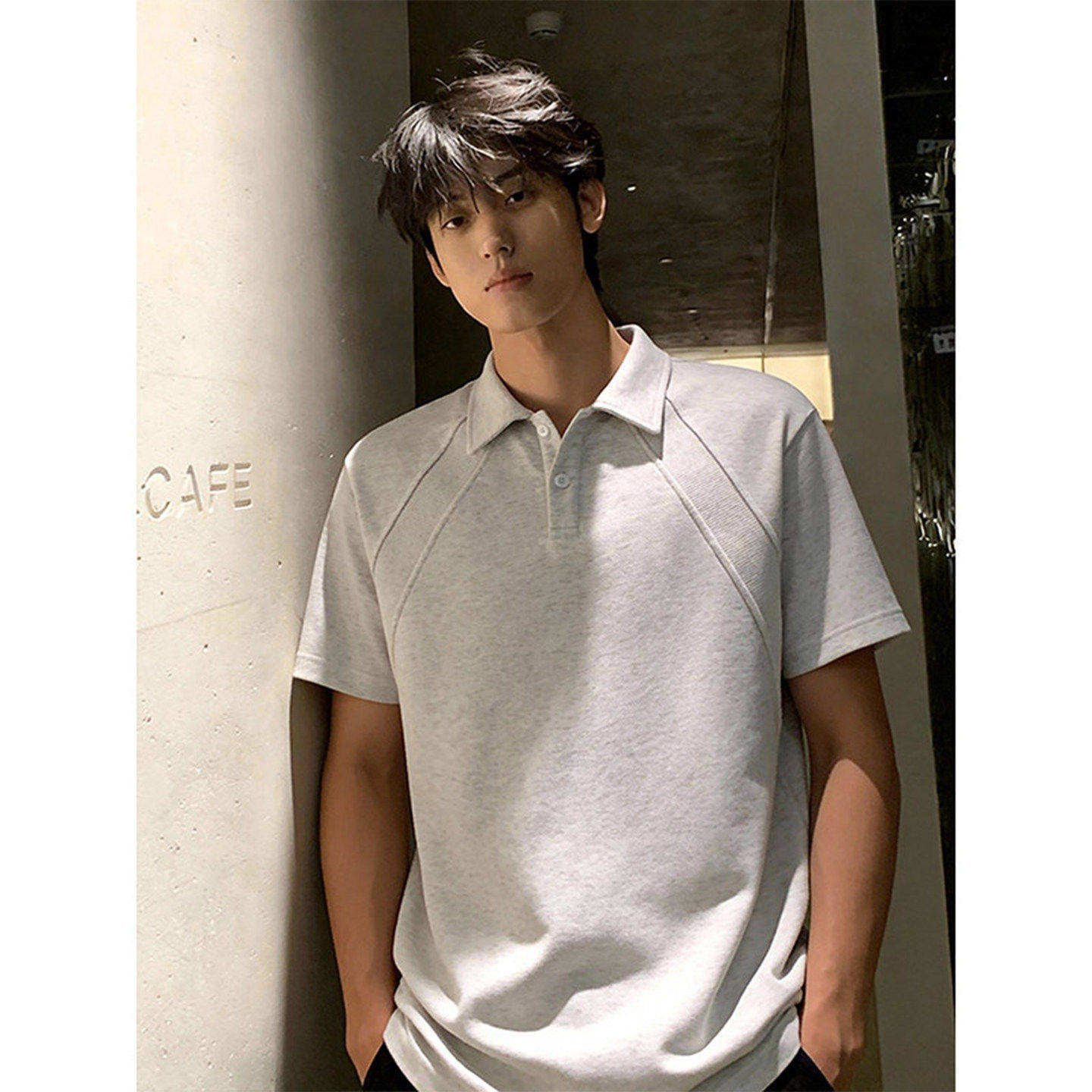 美式重磅Polo领短袖T恤男夏季boxy版型青少年半袖情侣宽松体恤衫