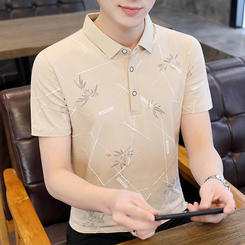 纯棉休闲男衬衫领polo衫青年潮夏季翻领短袖t恤男士新款修身汗衫
