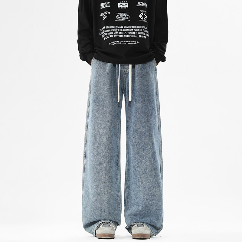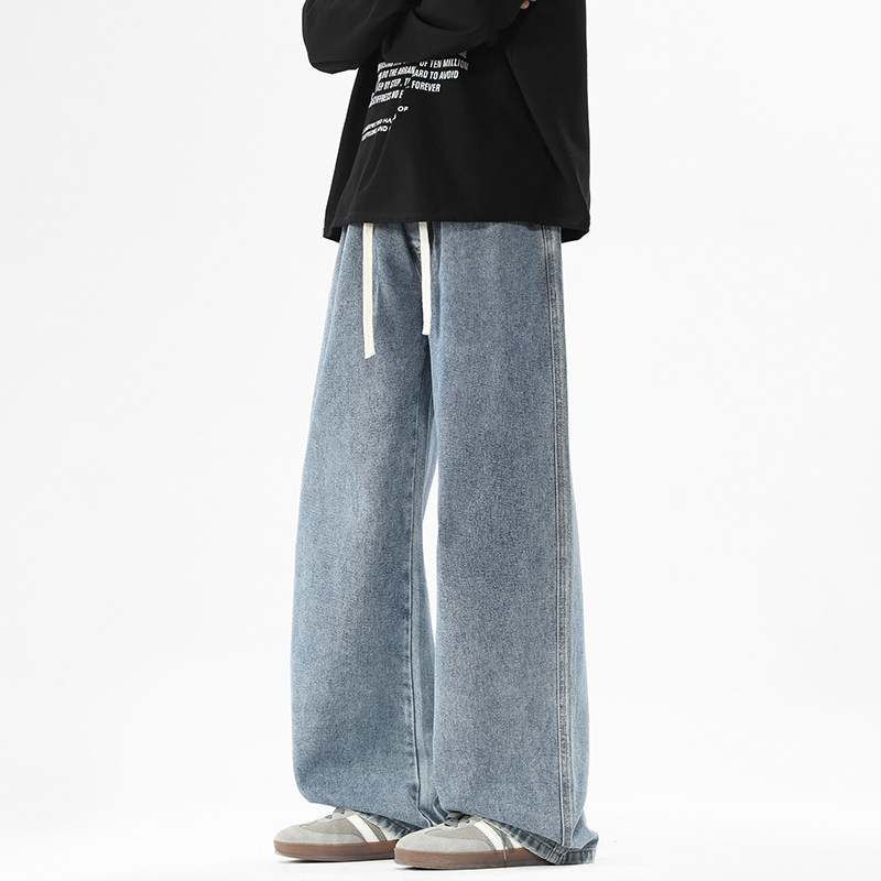 回力浅蓝色牛仔裤男士春夏季2026新款男生宽松直筒阔腿休闲长裤子