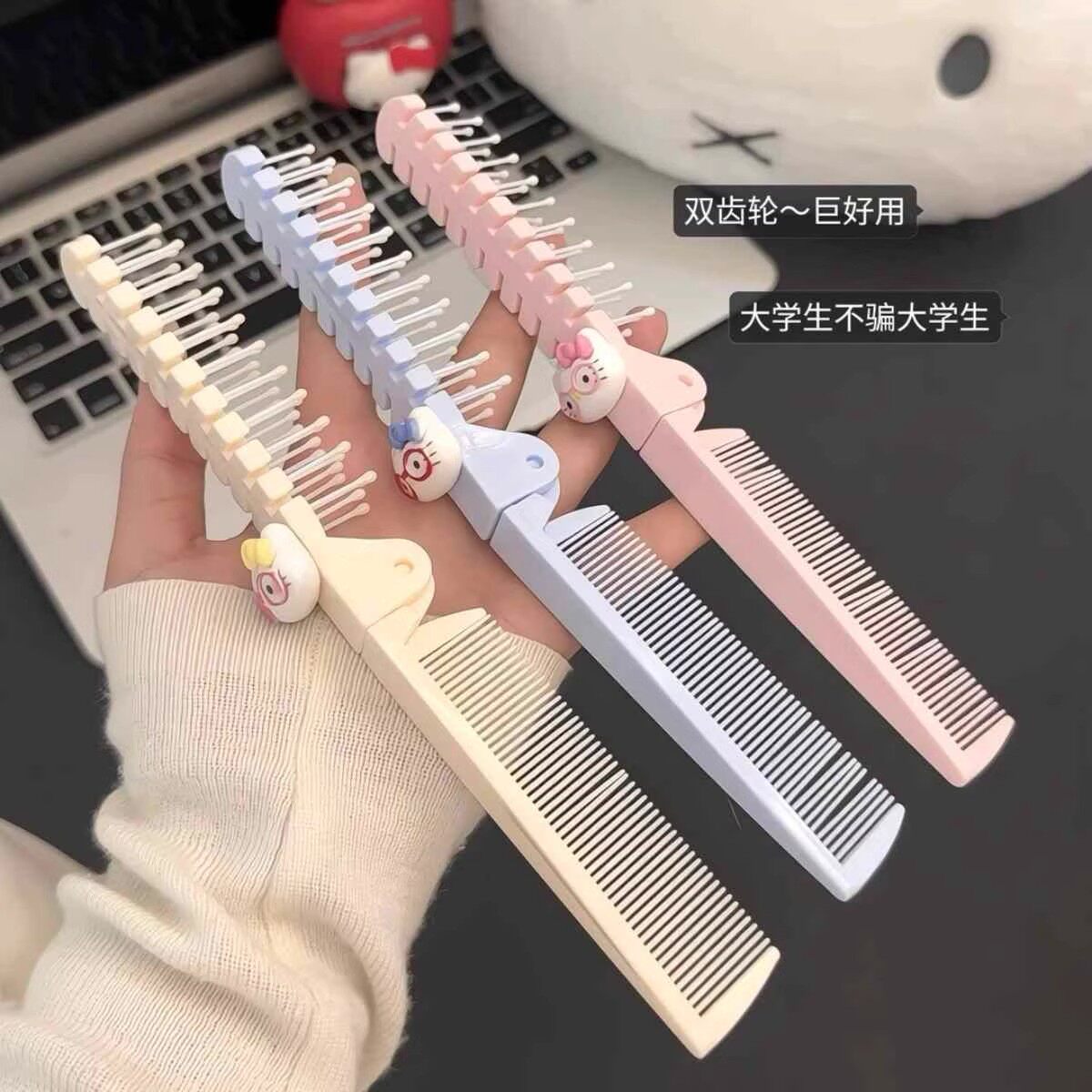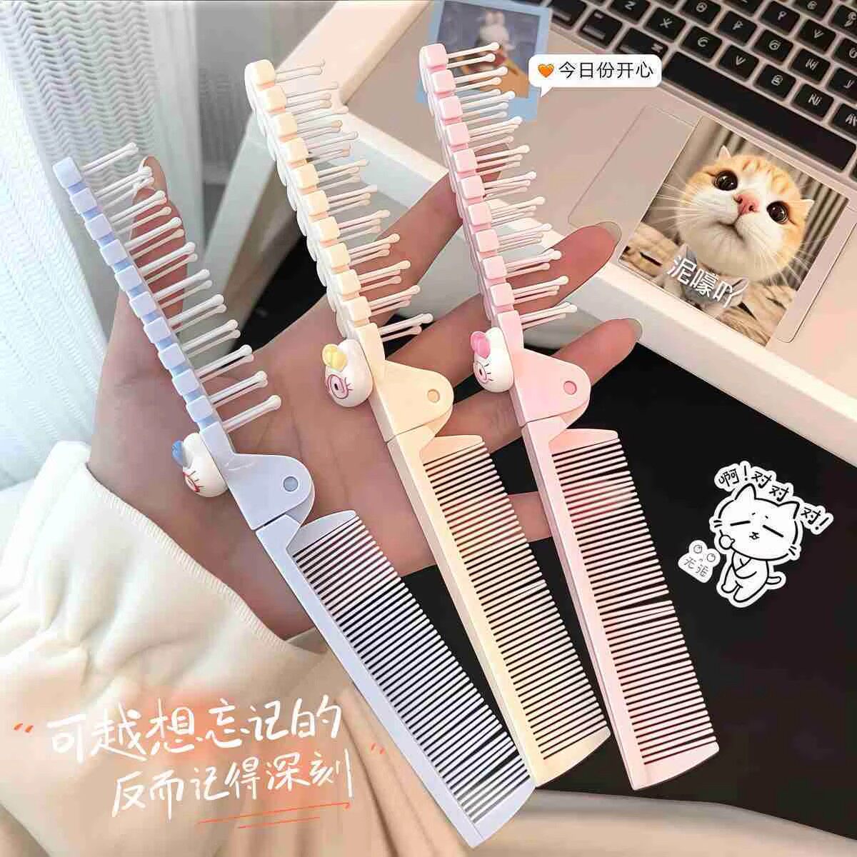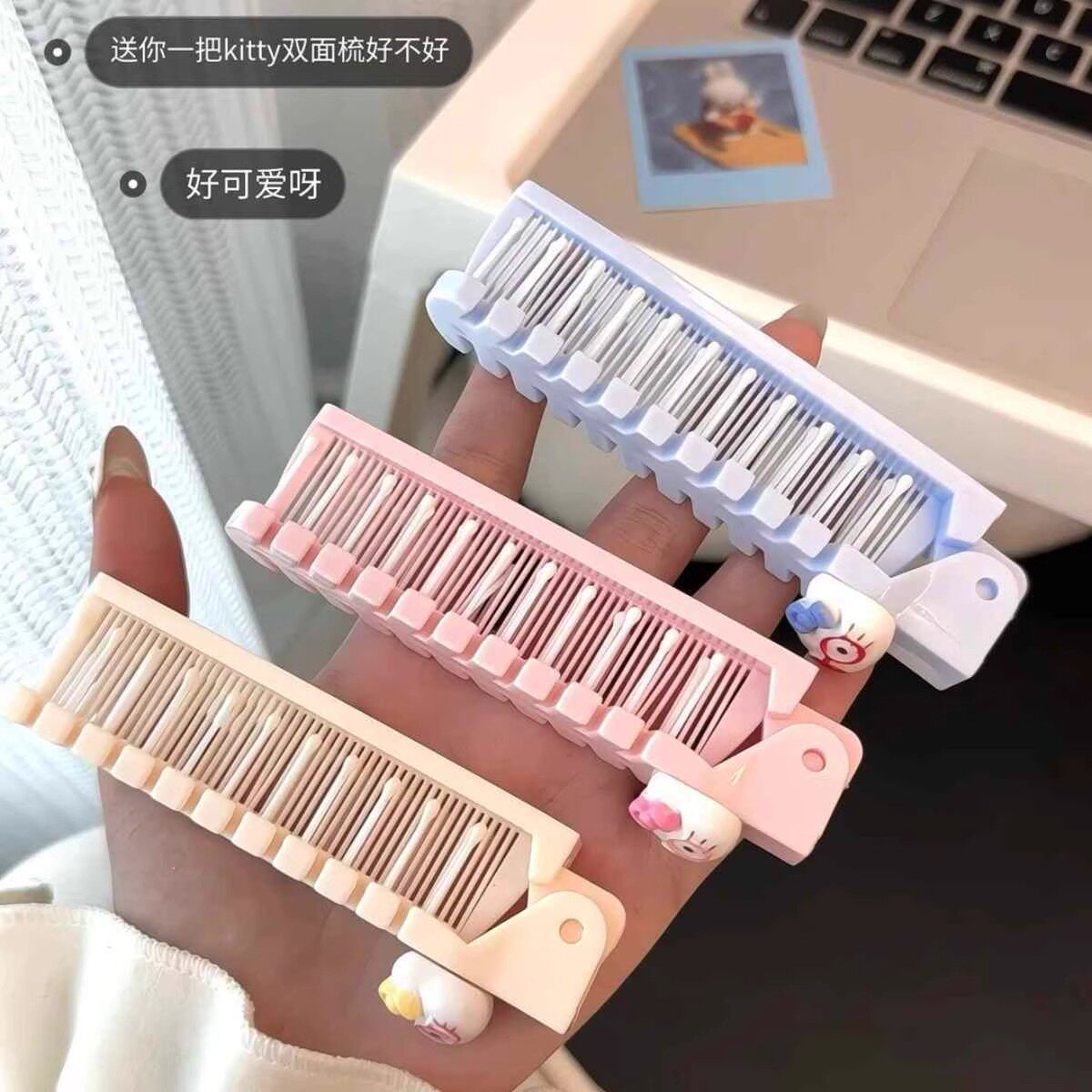 新款可爱小猫折叠便携式两用梳子蓬松防静电学生化妆旅行口袋梳子