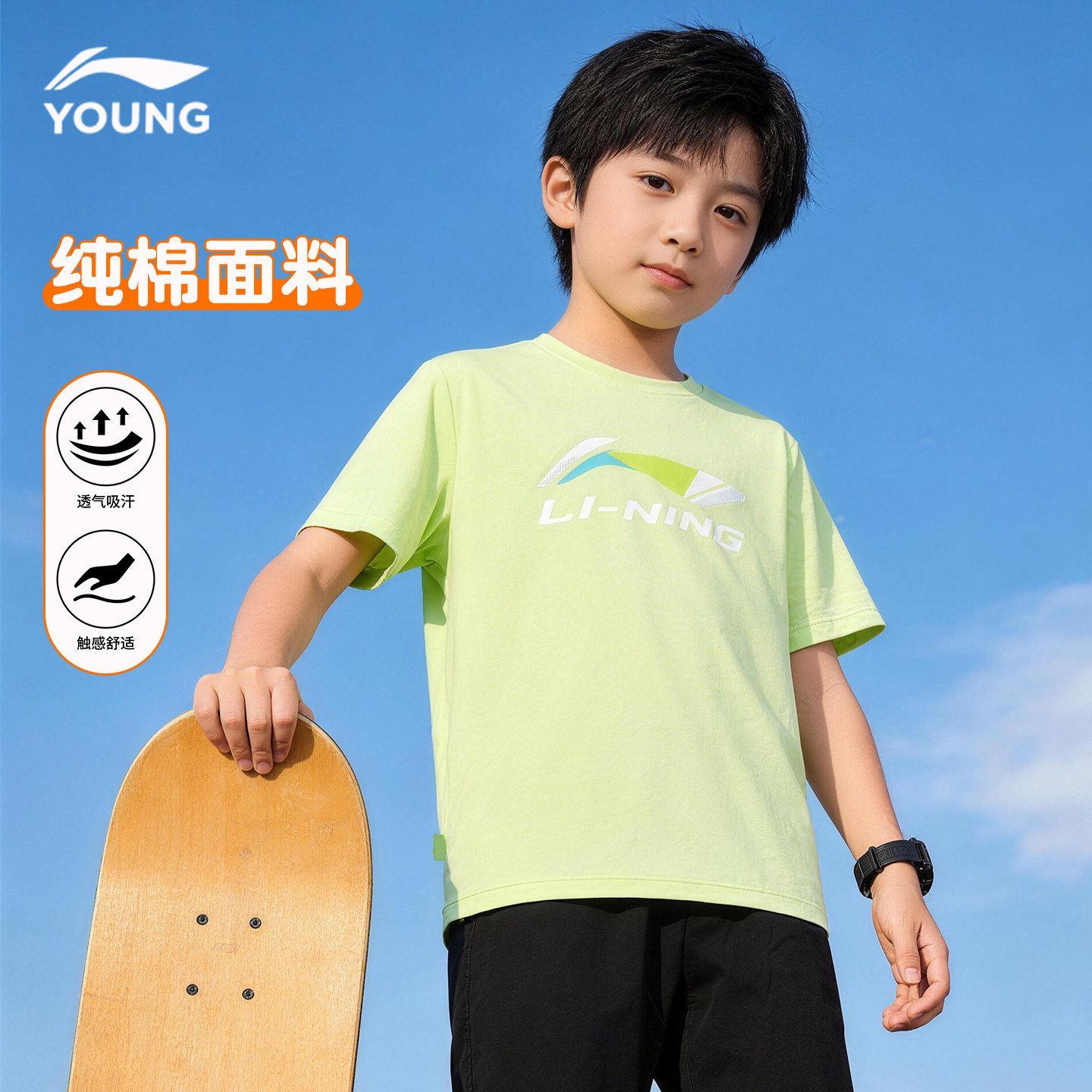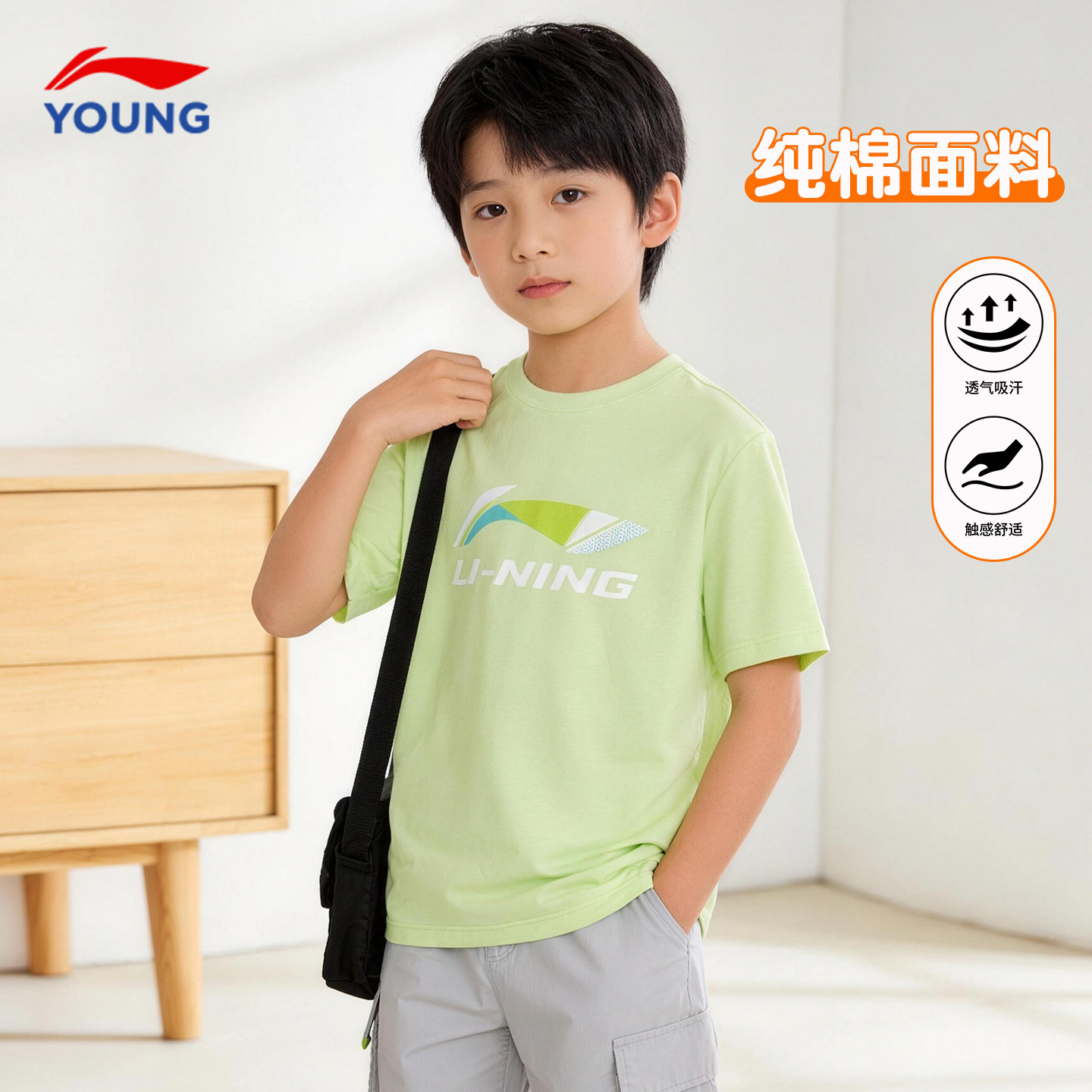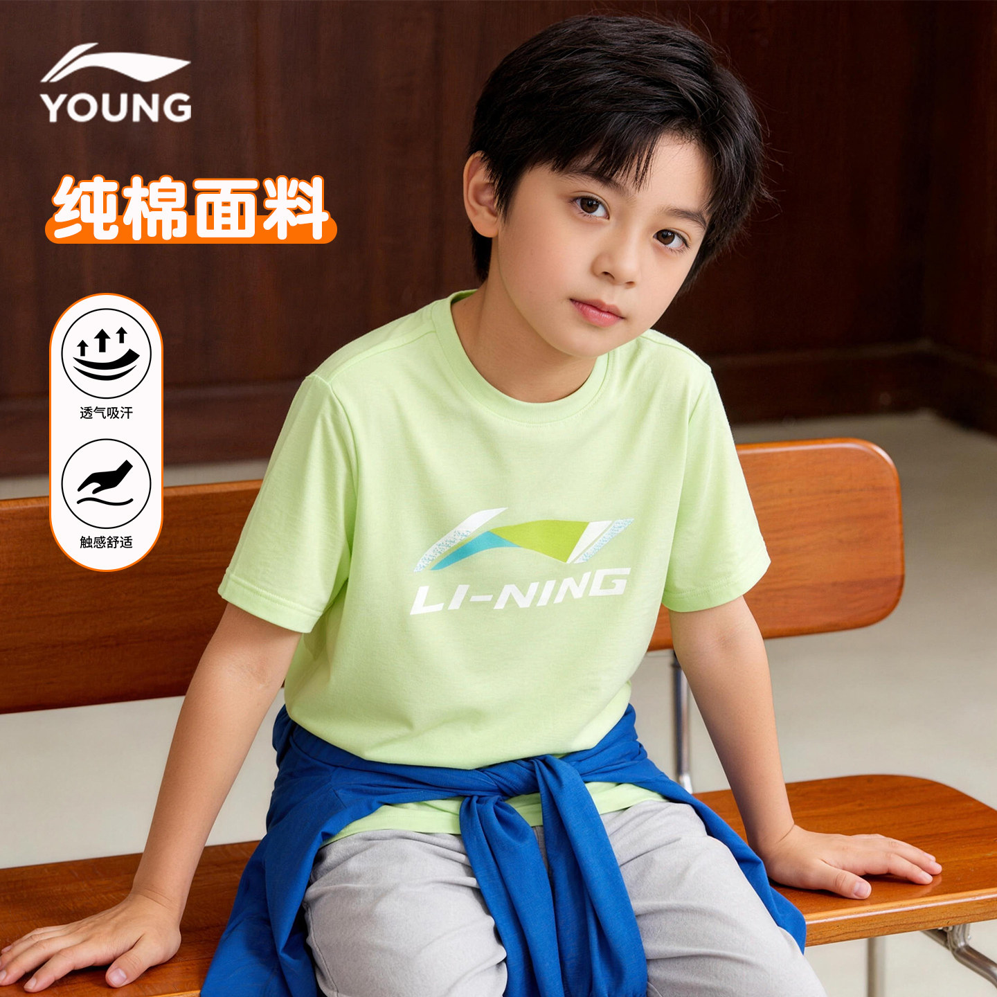 311线报网描述:李宁儿童纯棉短袖T恤男女大童官方正品授权