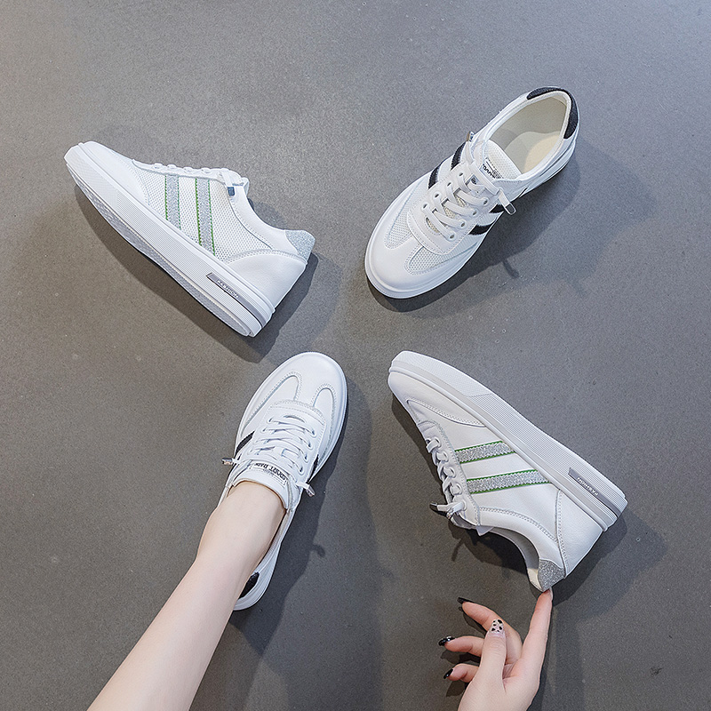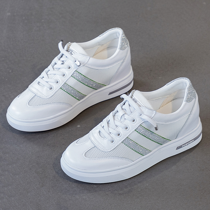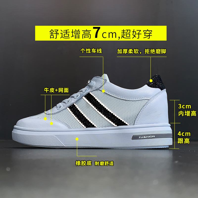真皮内增高小白鞋女2026春秋新款百搭鞋子网面透气运动女款休闲鞋