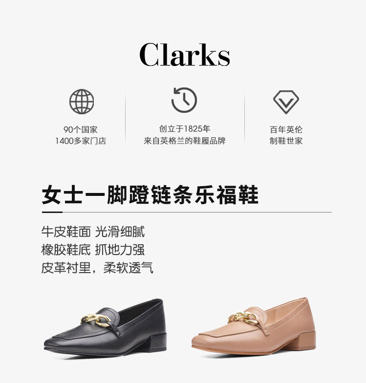 clarks其乐女鞋春夏款一脚蹬链条乐福单鞋通勤小皮鞋Seren30 Step