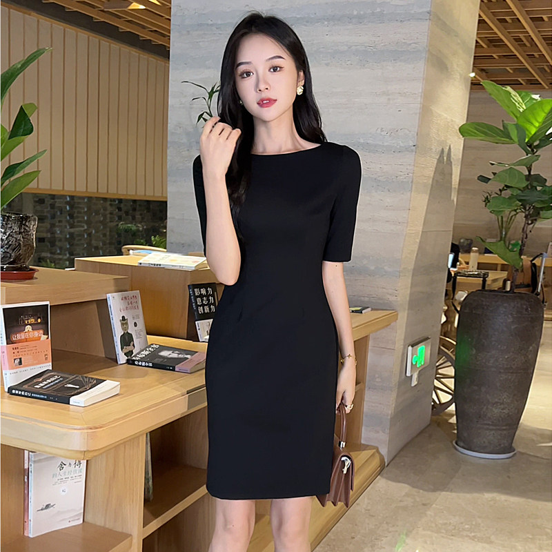 中袖气质连衣裙女新款春夏高级感显身材赫本风小黑裙日常通勤裙子