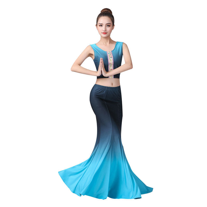 成人傣族舞蹈服艺考练功服鱼尾裙孔雀舞演出服云南新款修身