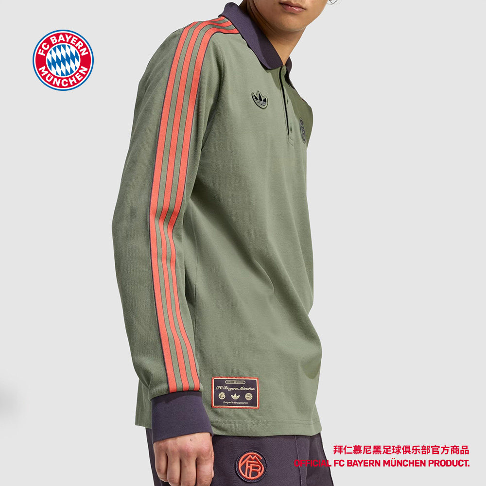 【官网同款】拜仁足球俱乐部丨复古长袖POLO衫军绿色潮流T恤