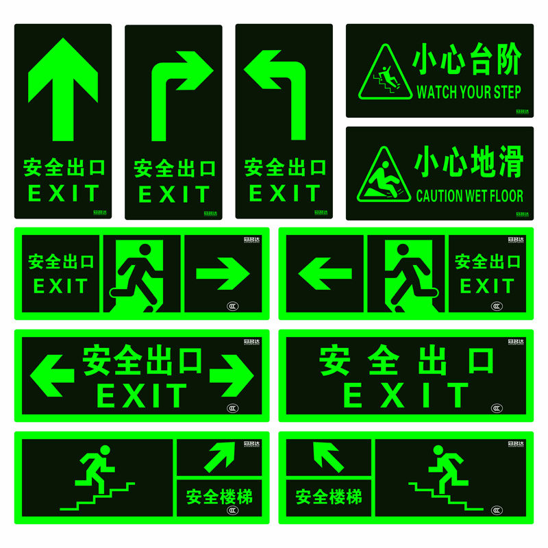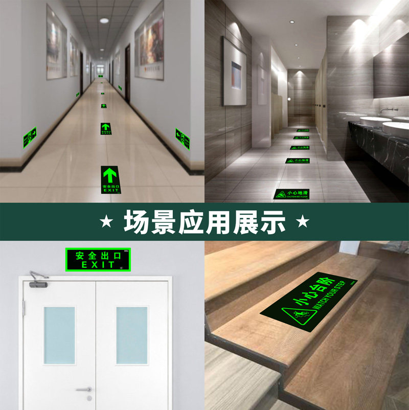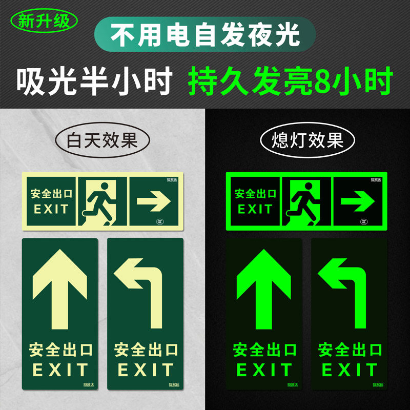 楼道安全出口标识牌疏散警示贴安全消防通道标示标志指示牌墙贴荧光夜光免接电左右直行箭头自粘式提示牌贴纸