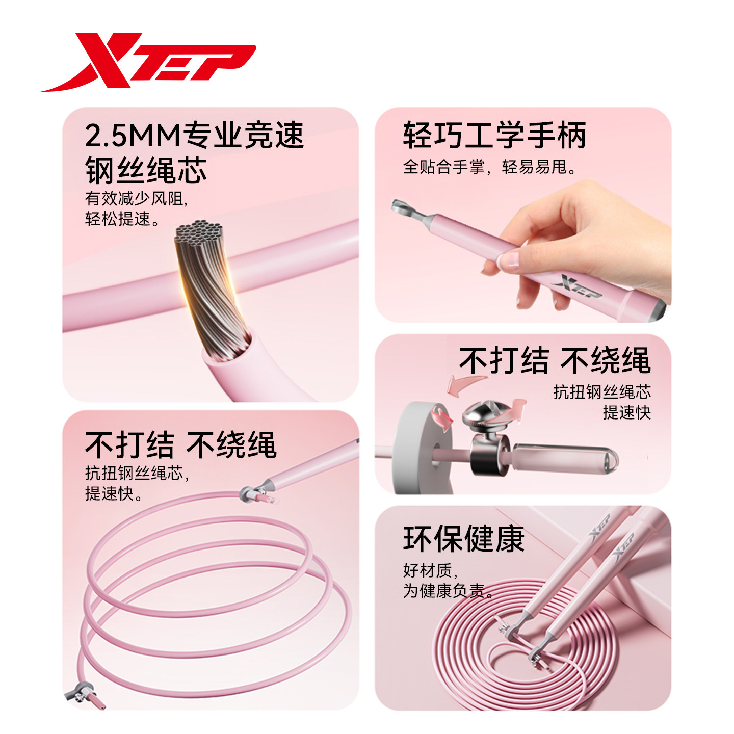 特步竞速跳绳专业速度中考儿童小学生比赛专用双摇极速超轻细钢丝