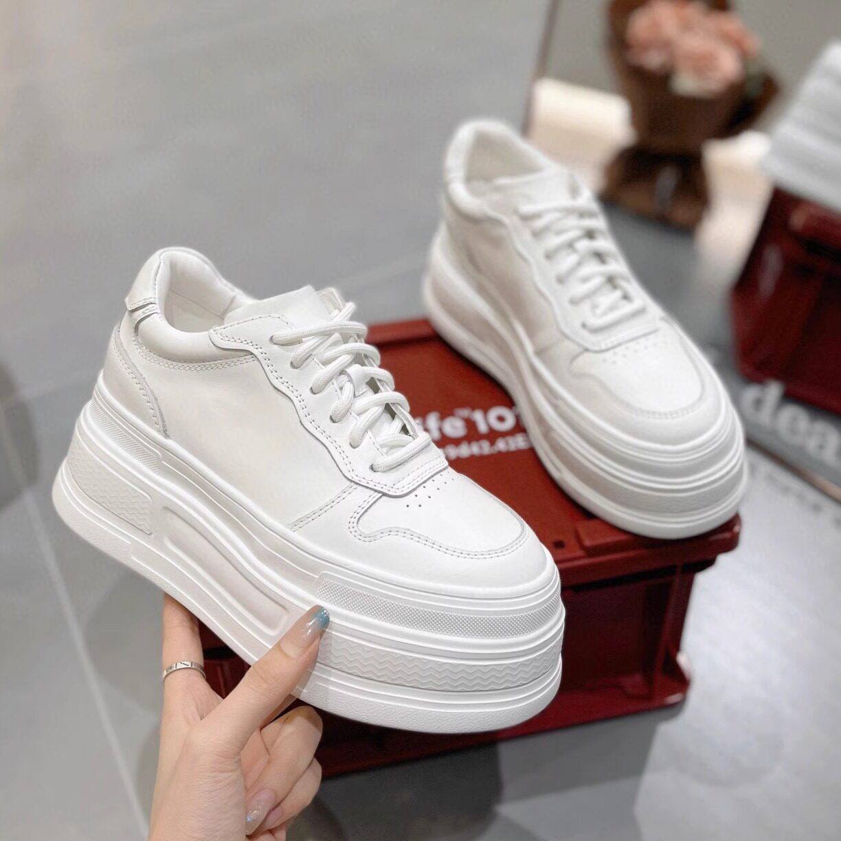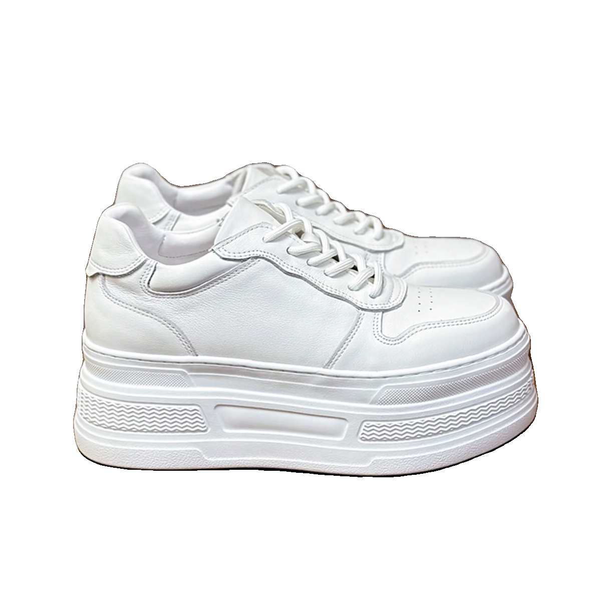 配阔腿裤的小白鞋轻便厚底内增高8-10cm真皮2026新款小个子松糕鞋