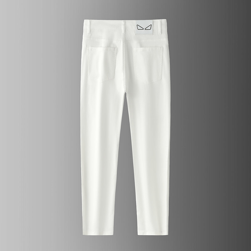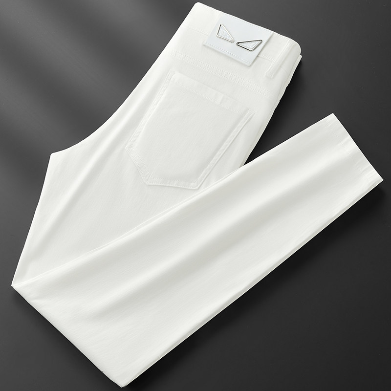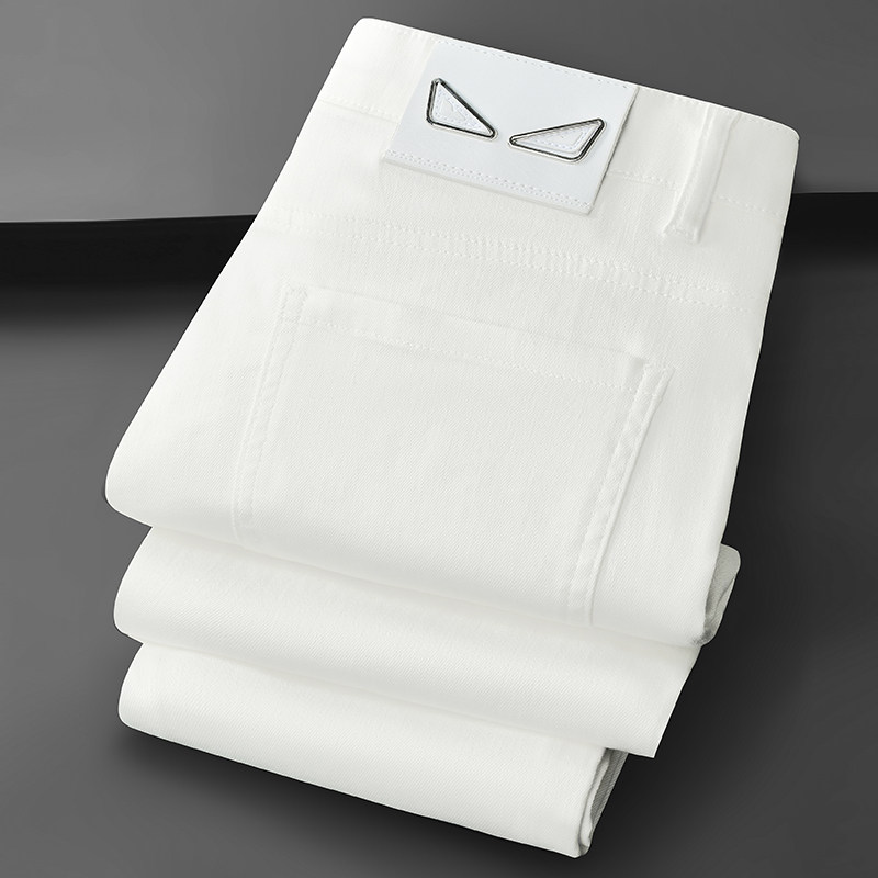 2026新款夏季三防面料白色牛仔裤男款修身小直筒薄款弹力男士裤子