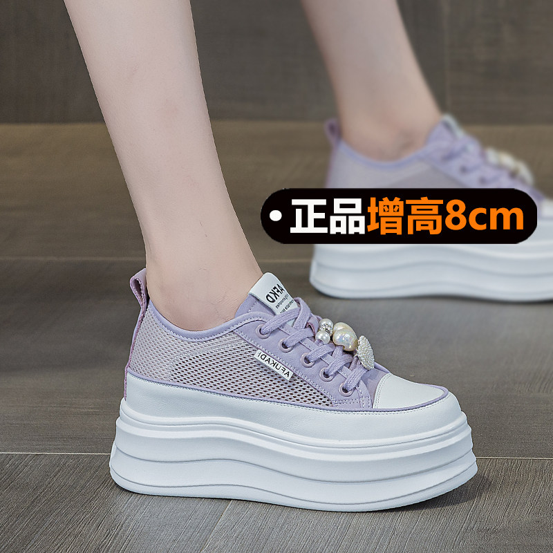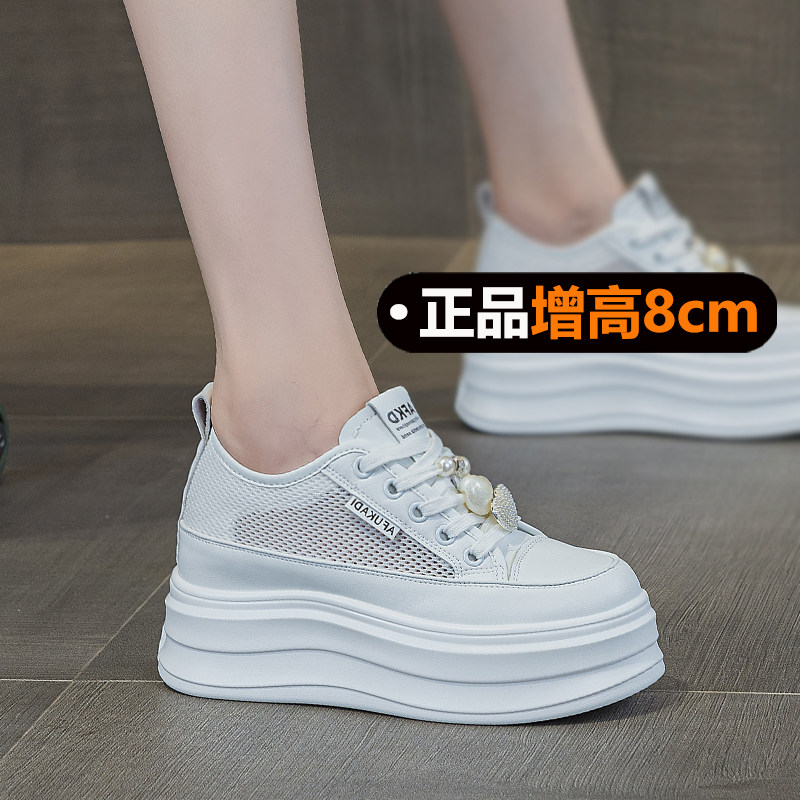 薄款厚底小白鞋女配裙子8cm内增高女鞋2026新款夏季网面透气轻便
