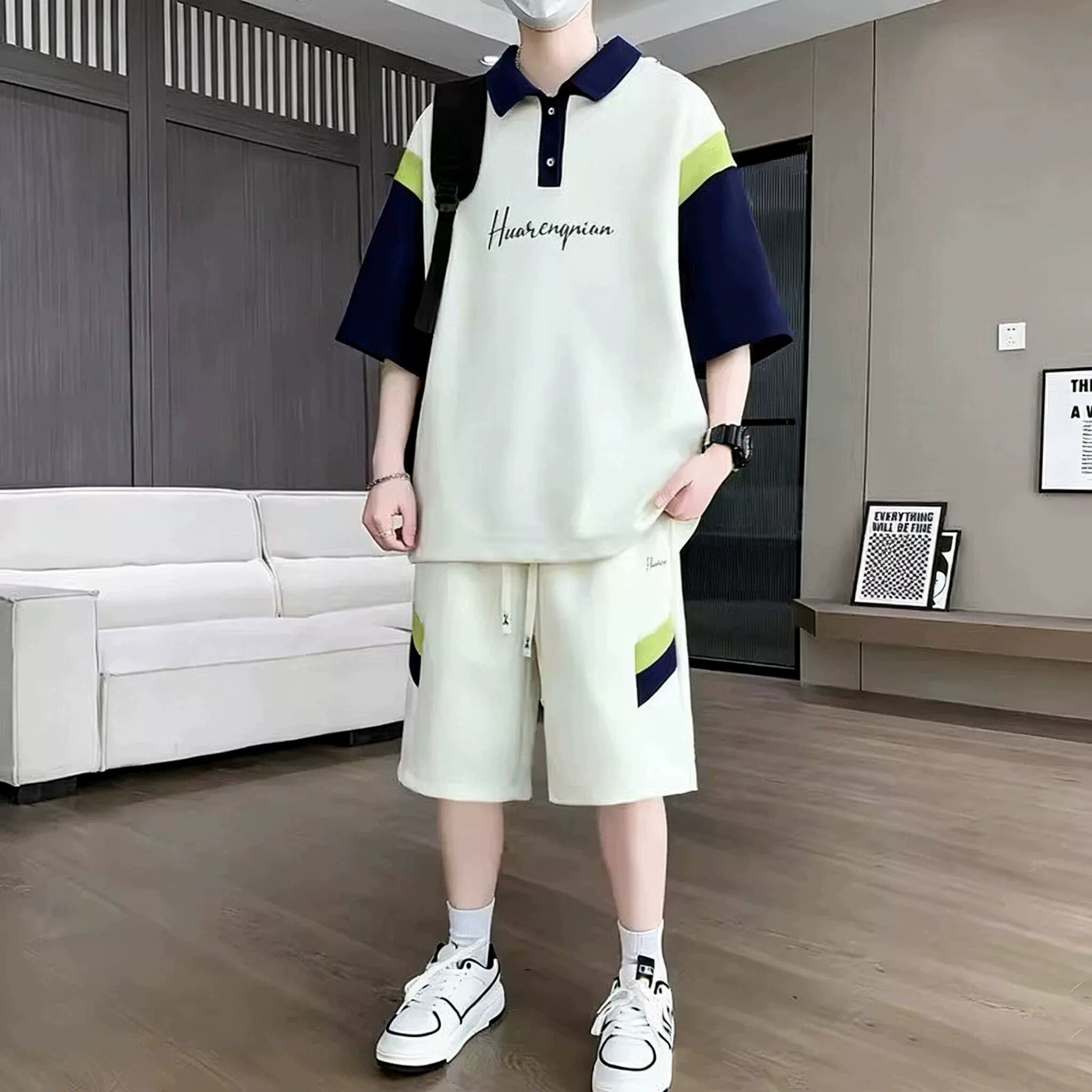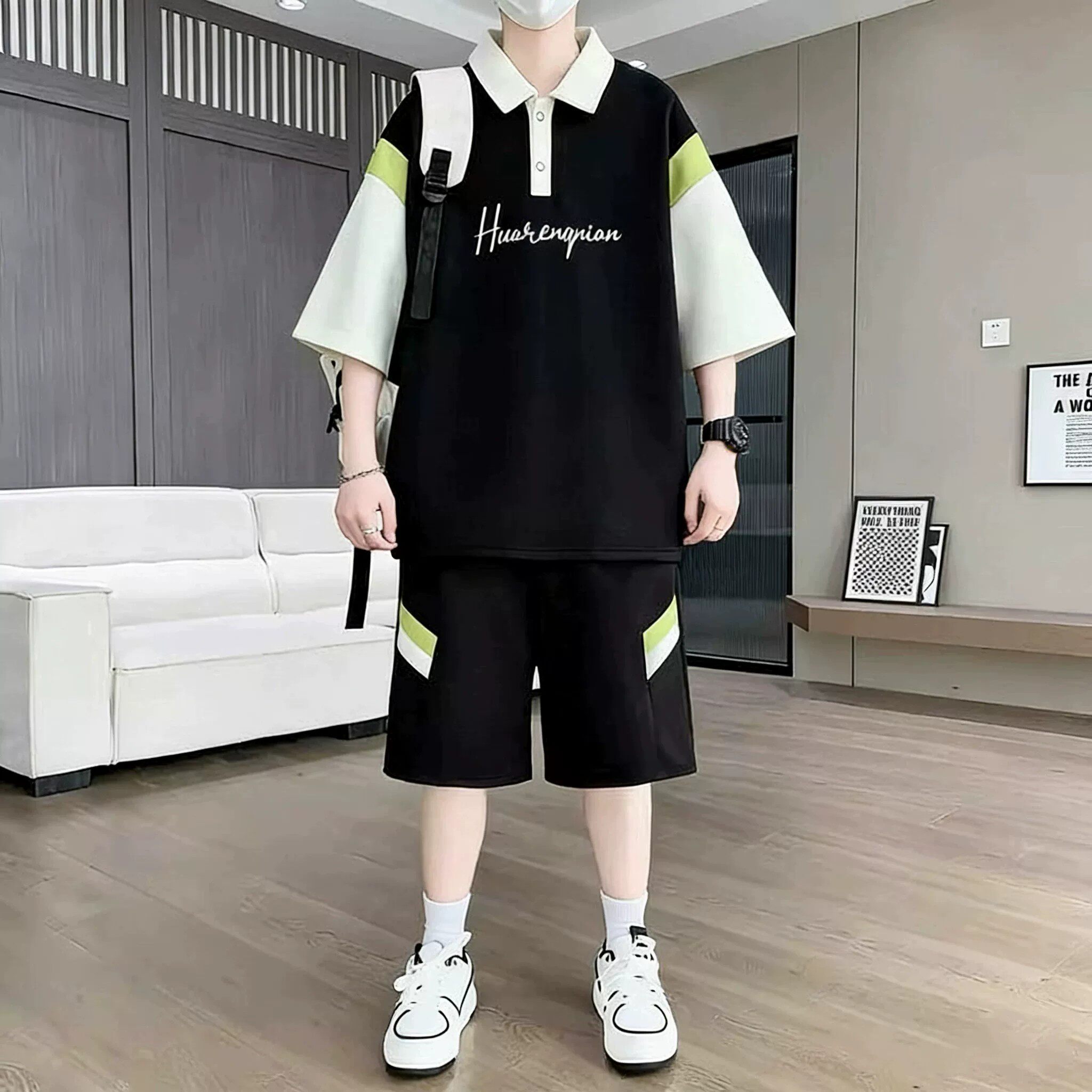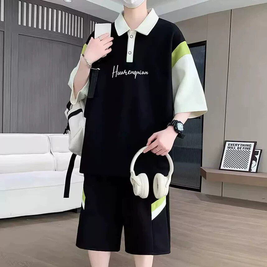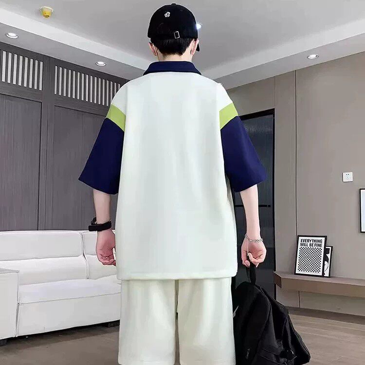 青少年短袖t恤男夏季2026新款高初中学生帅气潮流套装男孩polo衫