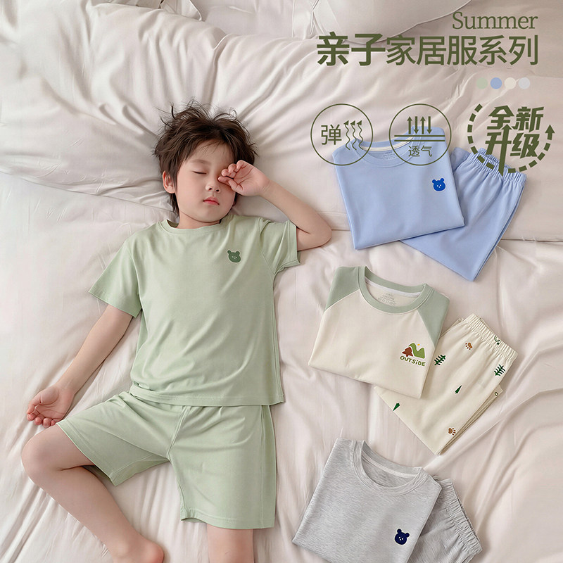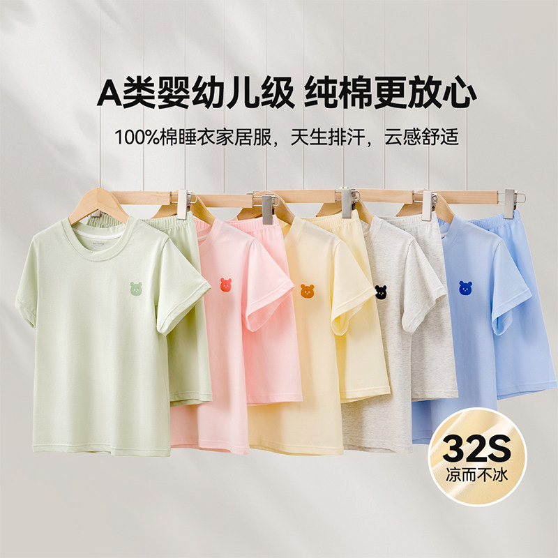 儿童睡衣男童女童家居服夏短袖全棉纯棉a类男宝宝透气空调服套装