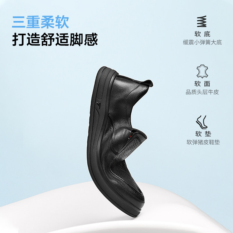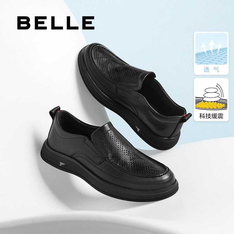 百丽男士软底商务休闲皮鞋夏季新款一脚蹬透气真皮爸爸鞋子A1010A