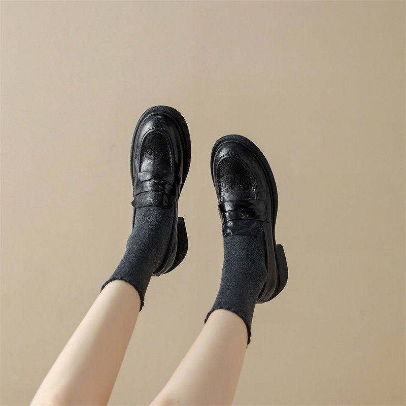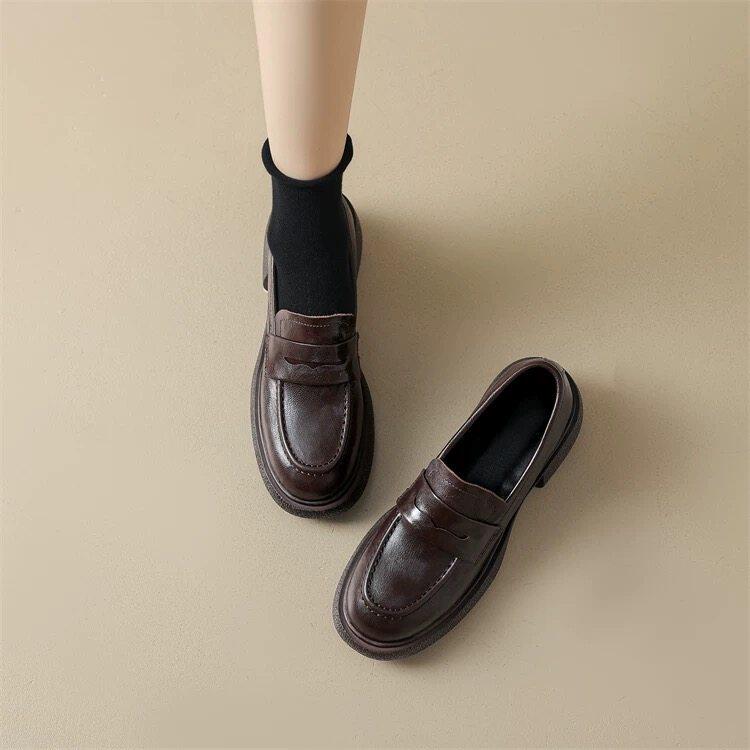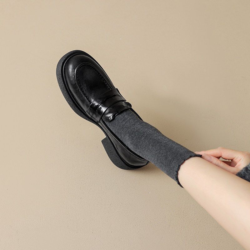 店主自留~!26春秋英伦风厚底真皮乐福鞋女粗跟圆头单鞋小皮鞋女