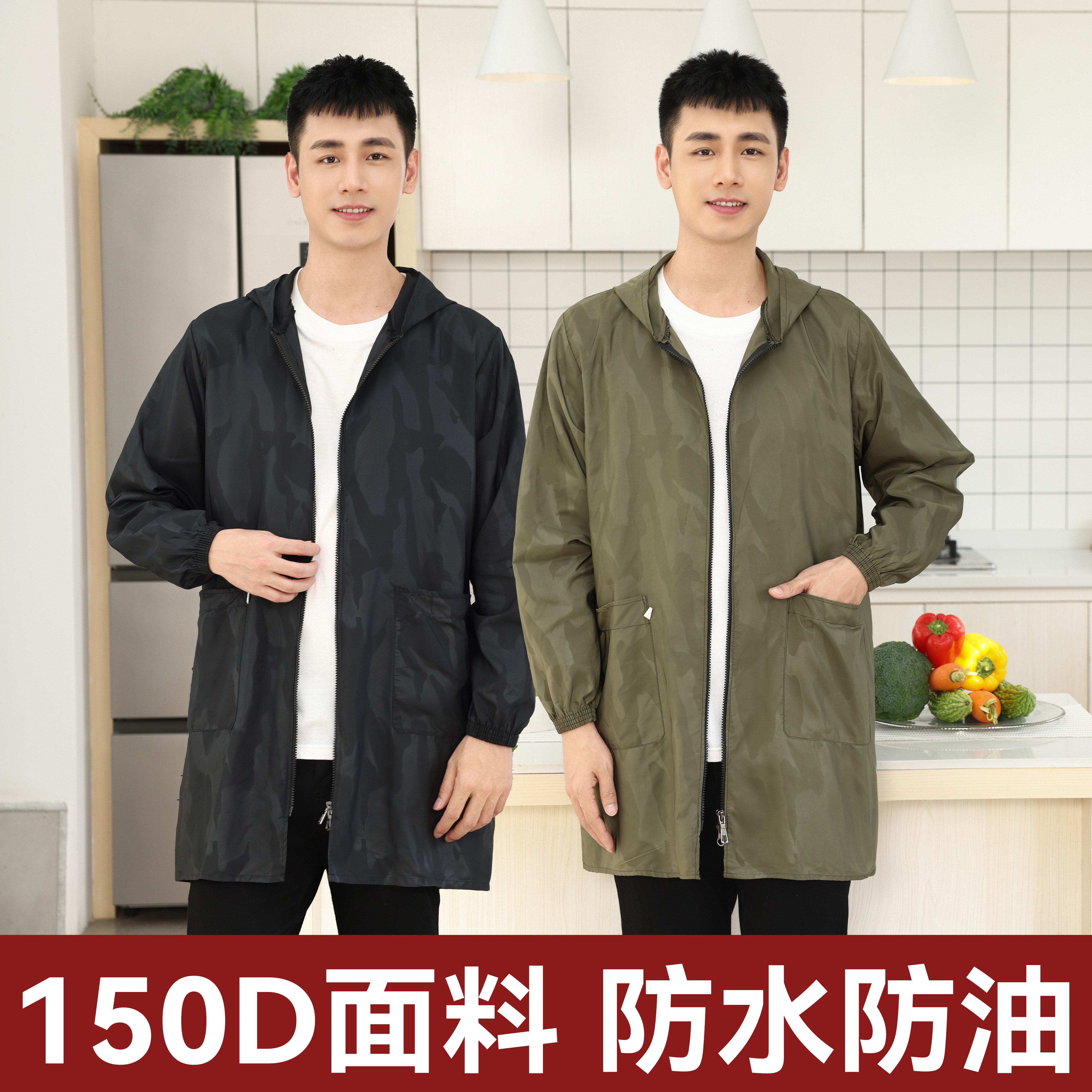 罩衣男防水防油防尘工作服大褂长袖秋冬新款薄款透气家用厨房围裙