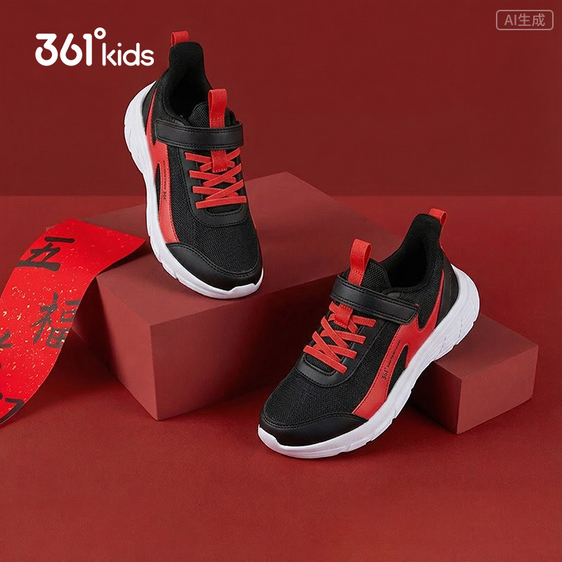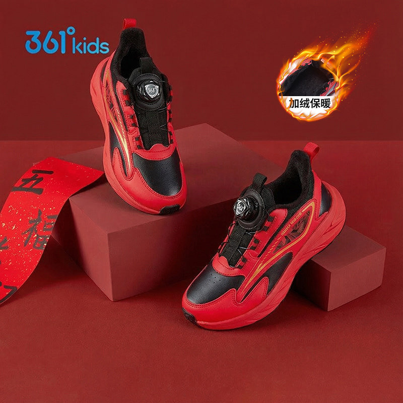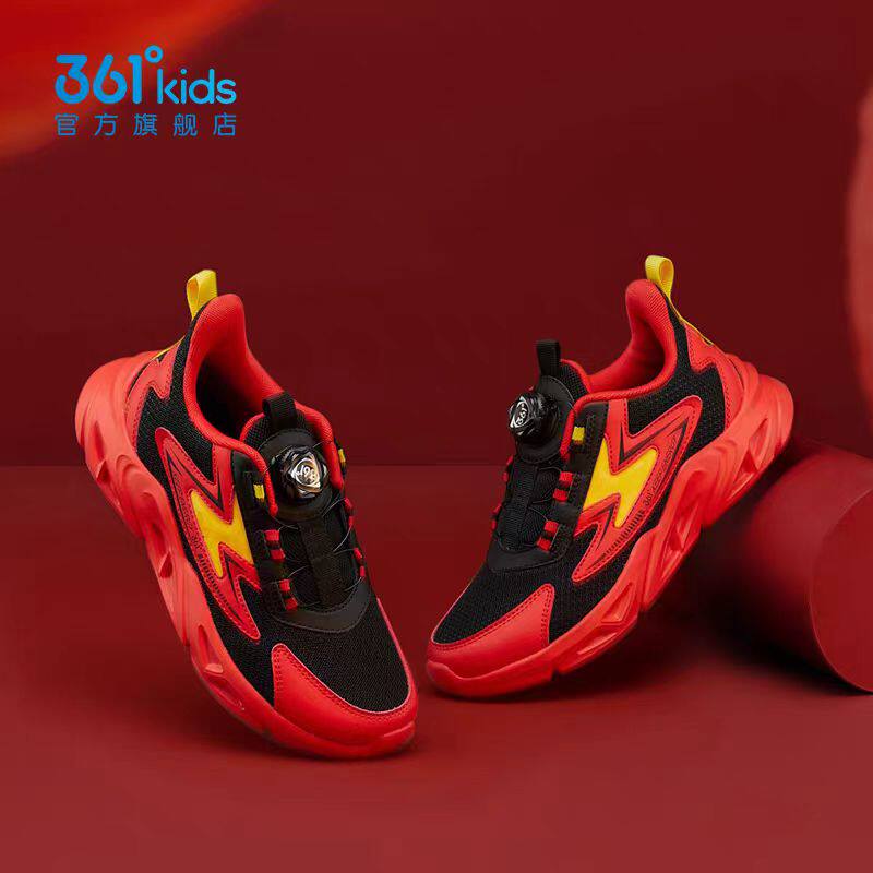 新年国潮361童鞋男童运动鞋2026红色新款儿童鞋子网面旋钮跑步鞋