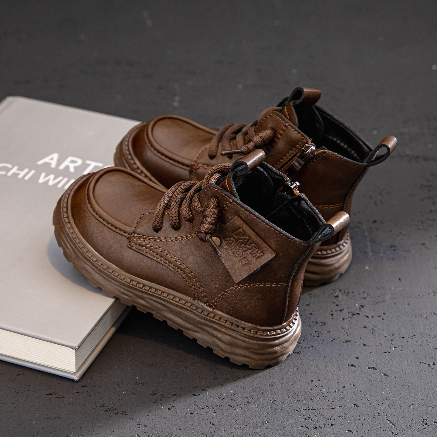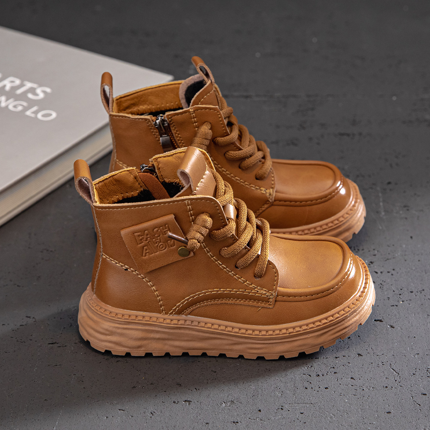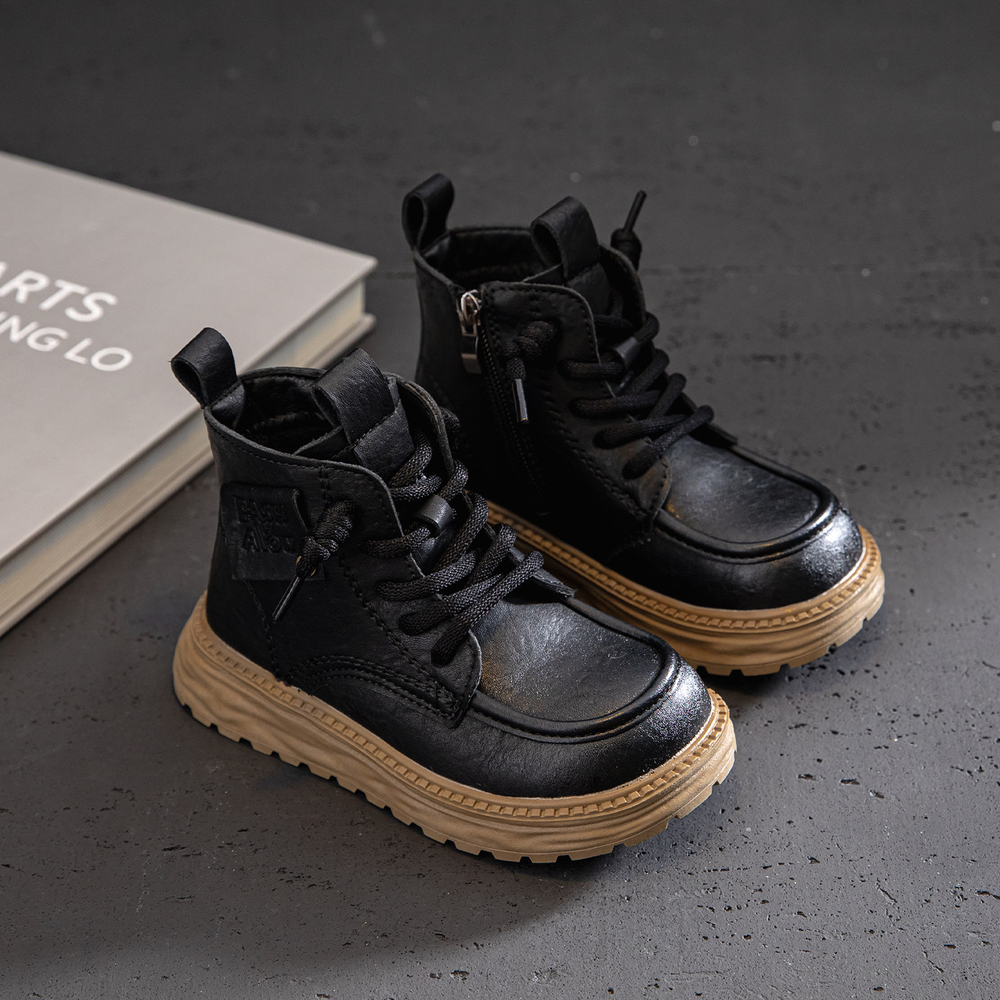 儿童马丁靴加绒保暖2025新款冬季二棉鞋女童英伦风防滑男孩短靴潮