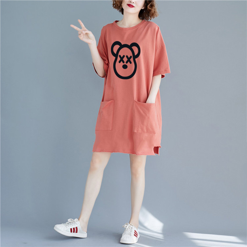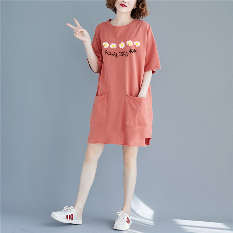 夏季大码宽松纯棉睡裙胖MM连衣裙休闲可外穿家居中长款短袖睡衣女