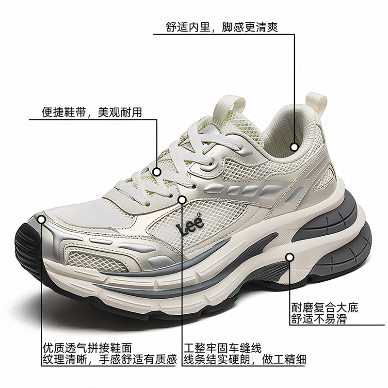 Lee老爹鞋男款2026新款今年流行爆款男鞋春季透气厚底增高休闲鞋