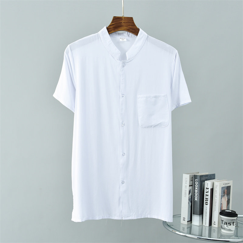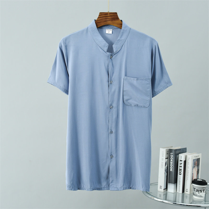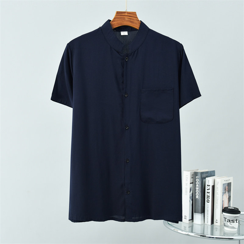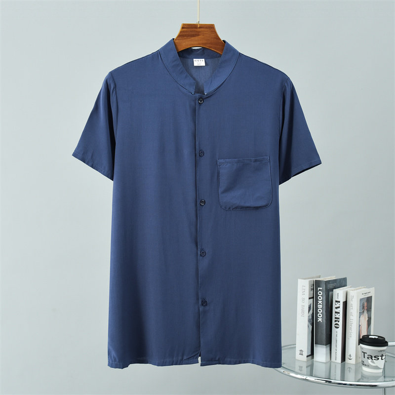 人造棉睡衣男士棉绸家居服上衣中老年爸爸装宽松开衫短袖男装立领