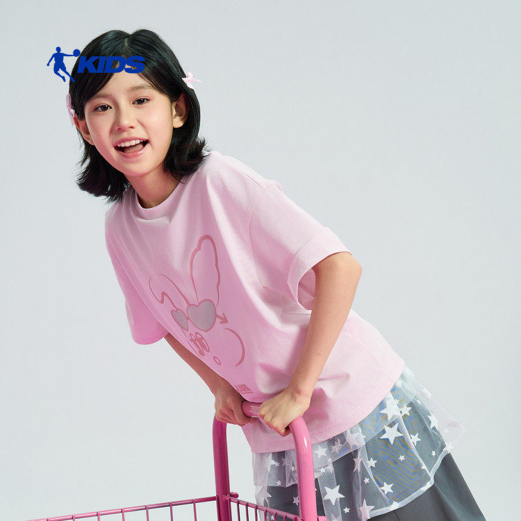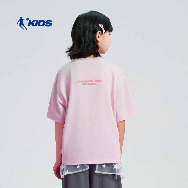 乔丹儿童短袖T恤衫2026夏季新款透气吸汗宽松休闲女大童运动短袖