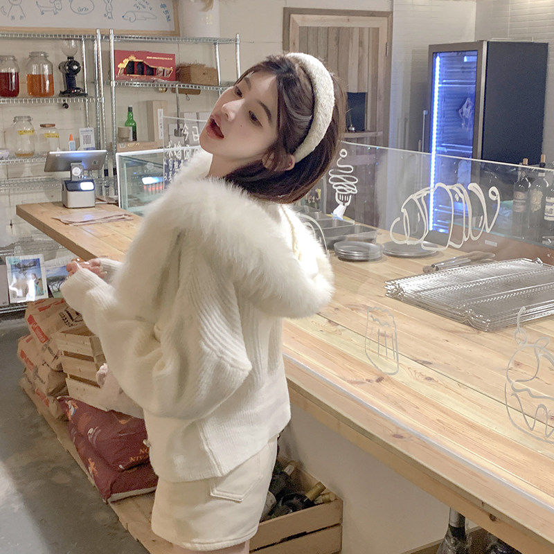 若语定制 小奶狐口袋版真狐狸毛冬款加厚毛衣开衫外套女高级感