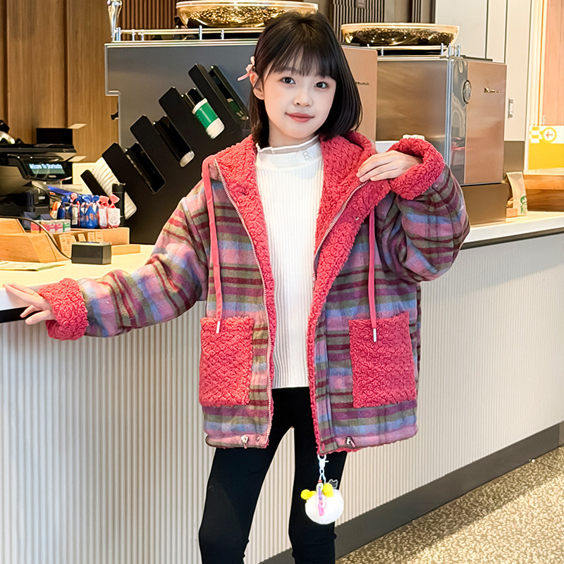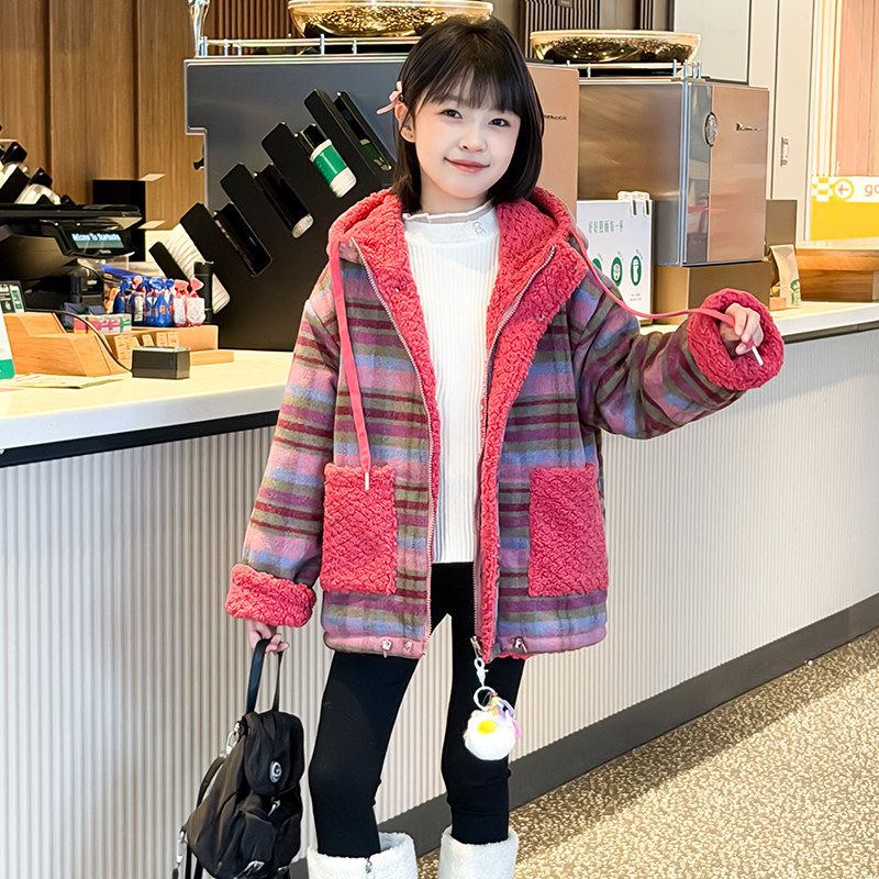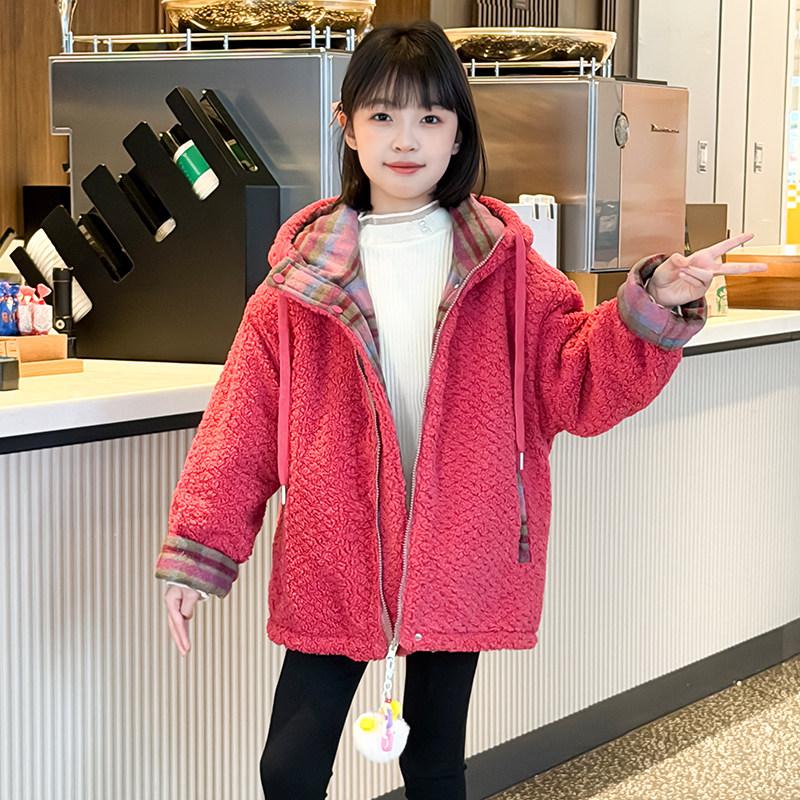 2026年新款女童超好看双面穿毛毛衣加厚外套中大童秋冬上衣棉服