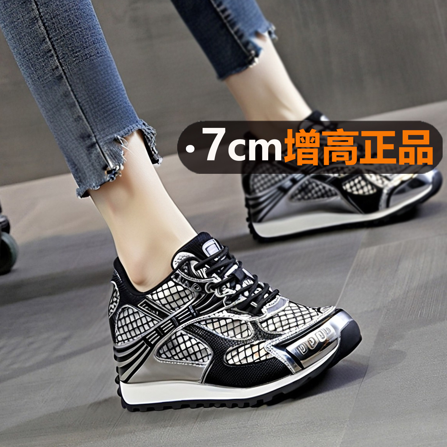 超轻不累脚内增高7cm休闲运动鞋女款百搭阿甘鞋网面透气2026新款