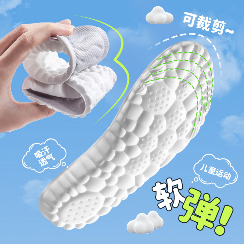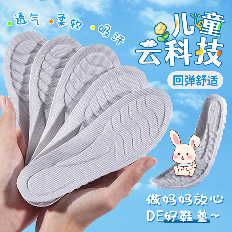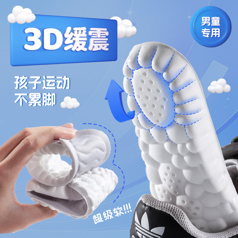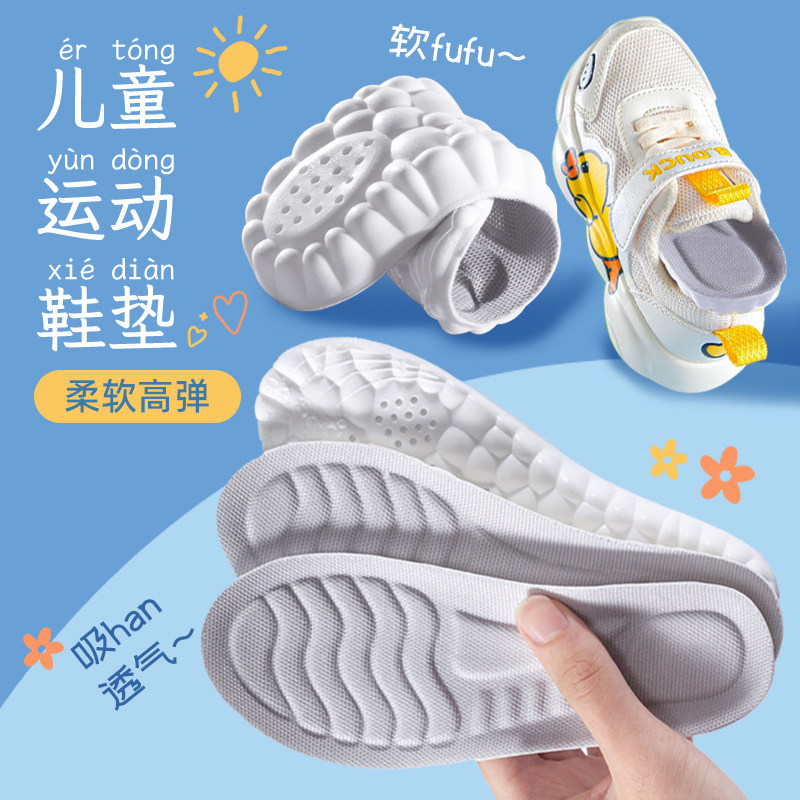 4D儿童运动鞋垫男女童宝宝鞋垫足弓支撑超软加厚吸汗透气小孩鞋垫