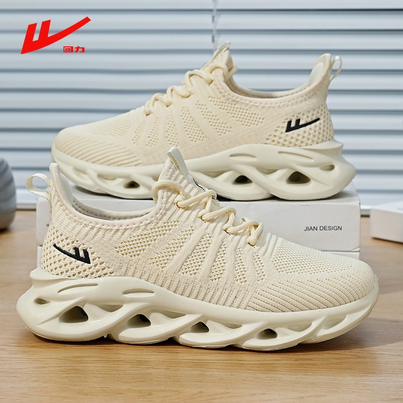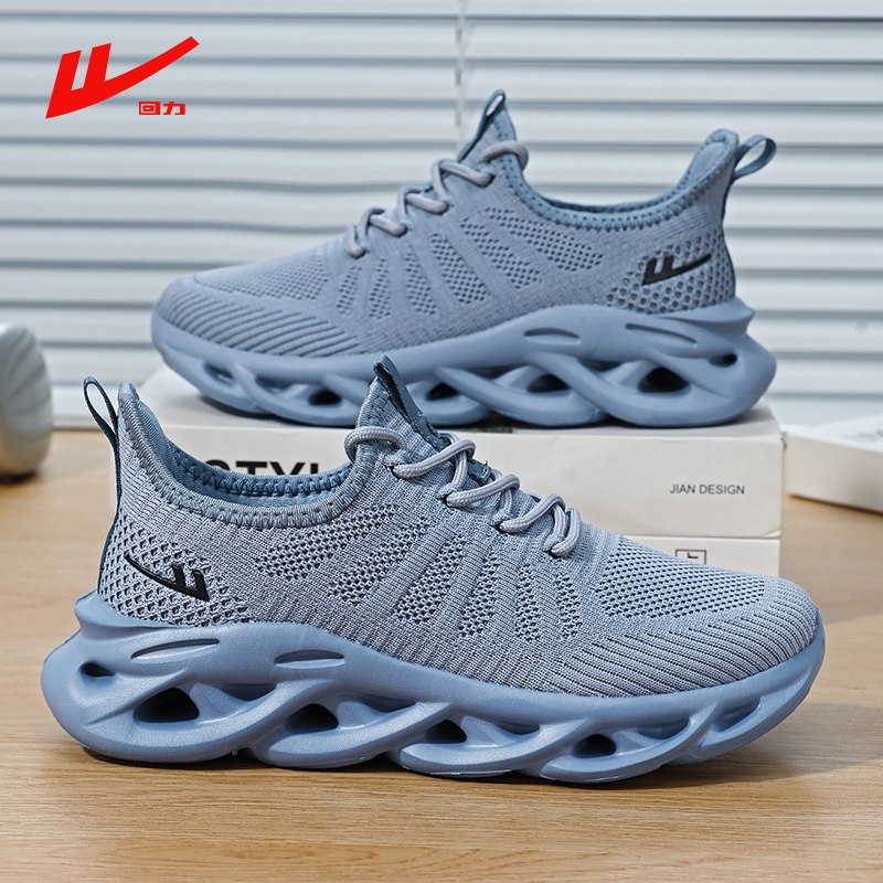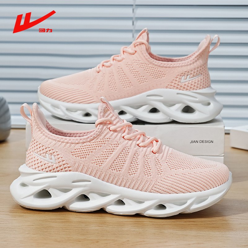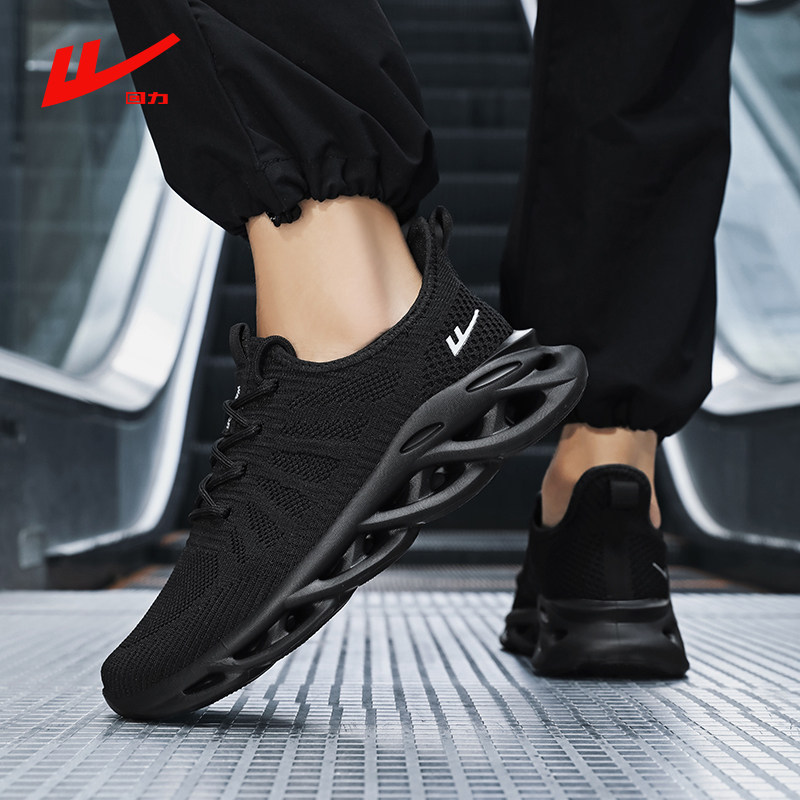回力情侣款运动鞋男女鞋黑色轻便软底超轻飞织网面透气减震跑步鞋
