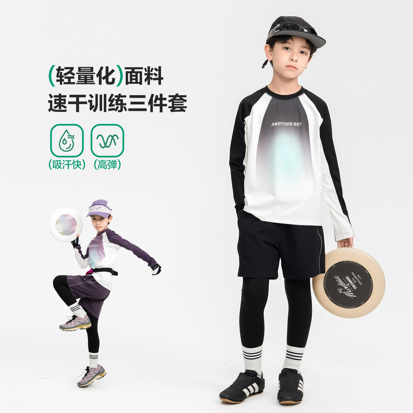 男童春季渐变撞色速干训练服套装2026新款儿童男孩户外运动三件套