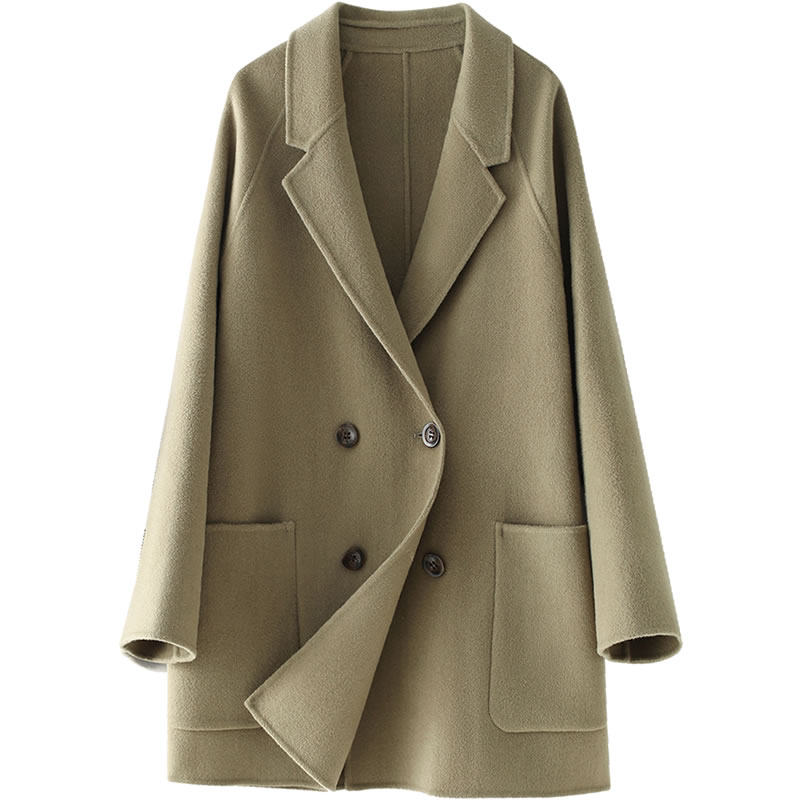 春新秋季羊毛双面绒呢子大衣女短款宽松大码韩版毛呢外套胖mm潮